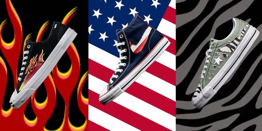 此次三款 Converse 分别选用了 Chuck Taylor All Star、One Star 和开口笑 Jack Purcell,可以说囊括了 Converse 最经典的造型。