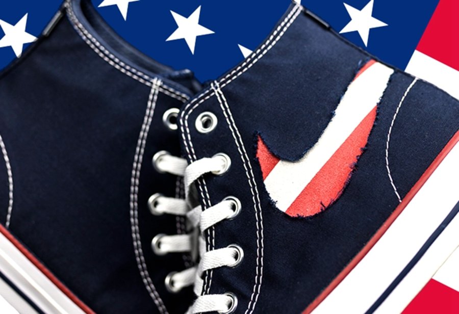 而刮开鞋舌后即可看到蓝底白星,完整展现出这款配色的美国国旗主题。