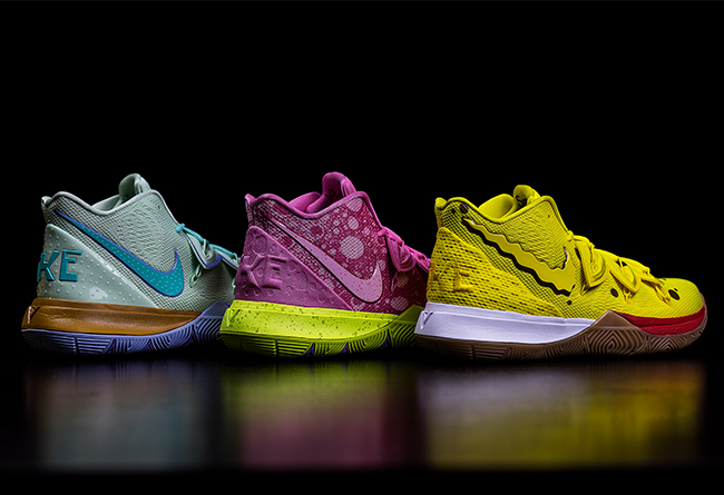 国内 Nike SKNRS APP 及指定门店确定将于 8 月 10 日正式发售,包含海绵宝宝、派大星及章鱼哥三款 Kyrie 5 的全家族尺码。男款定价 ¥999 RMB,女款及童鞋分别为 ¥699 RMB 和 ¥499 RMB。
