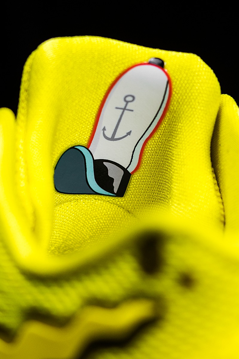 鞋身采用标志性黄色示人,并辅以斑点营造海绵宝宝的面部细节!
