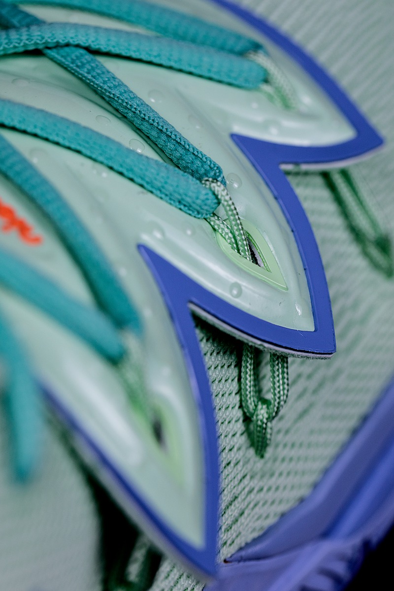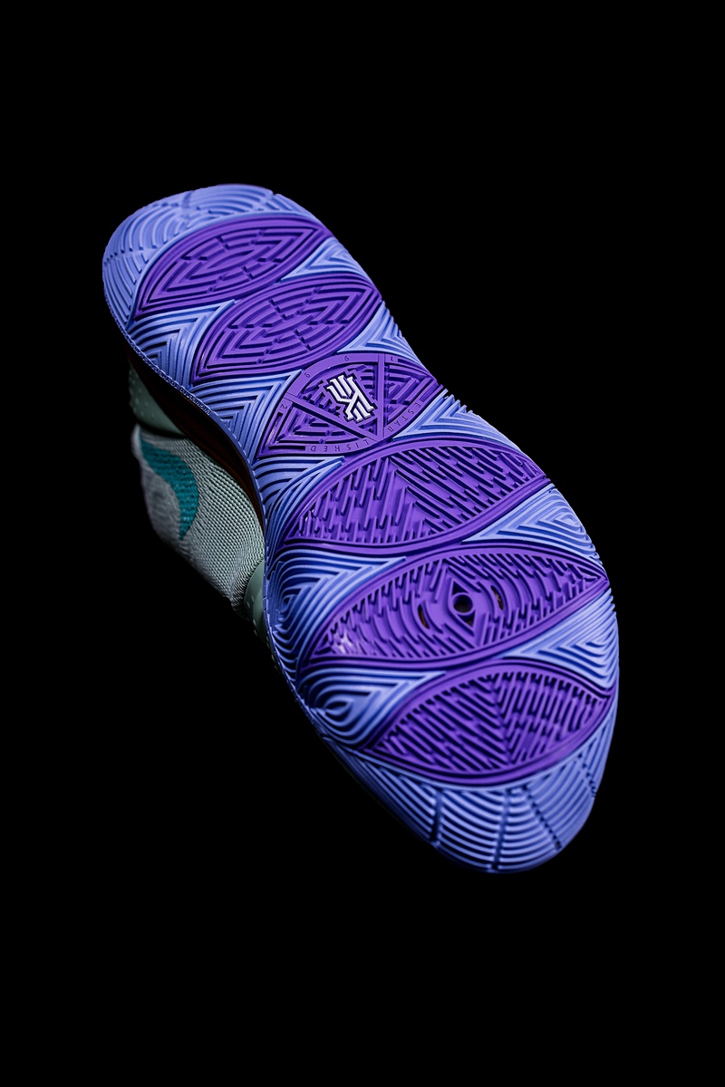 鞋舌部位将 Kyrie 缩写也采用同样方式呈现,并在鞋面负责包裹的捕蝇草细节,点缀 nickelodeon (尼克国际儿童频道) 字样,致敬意味浓厚!