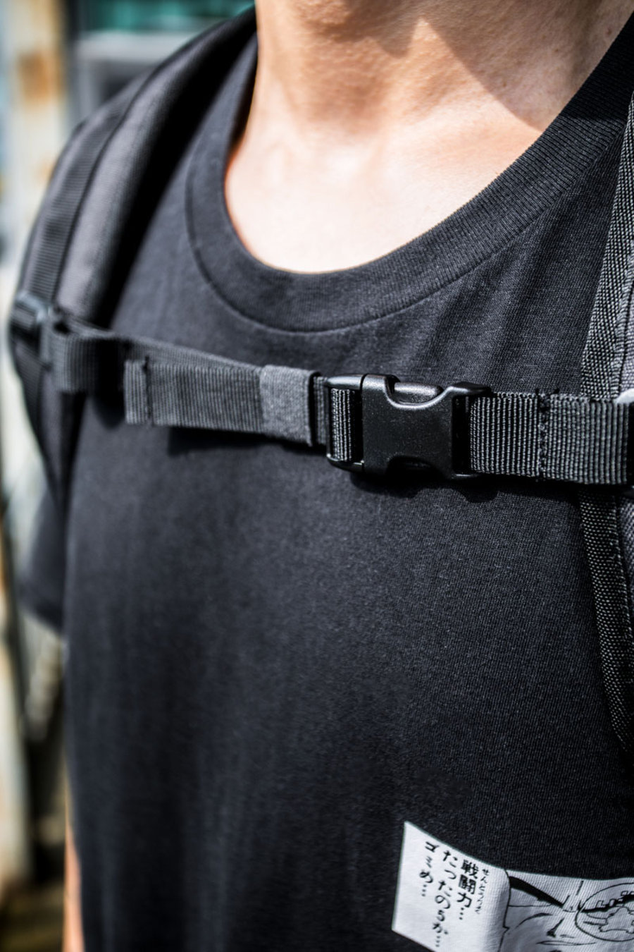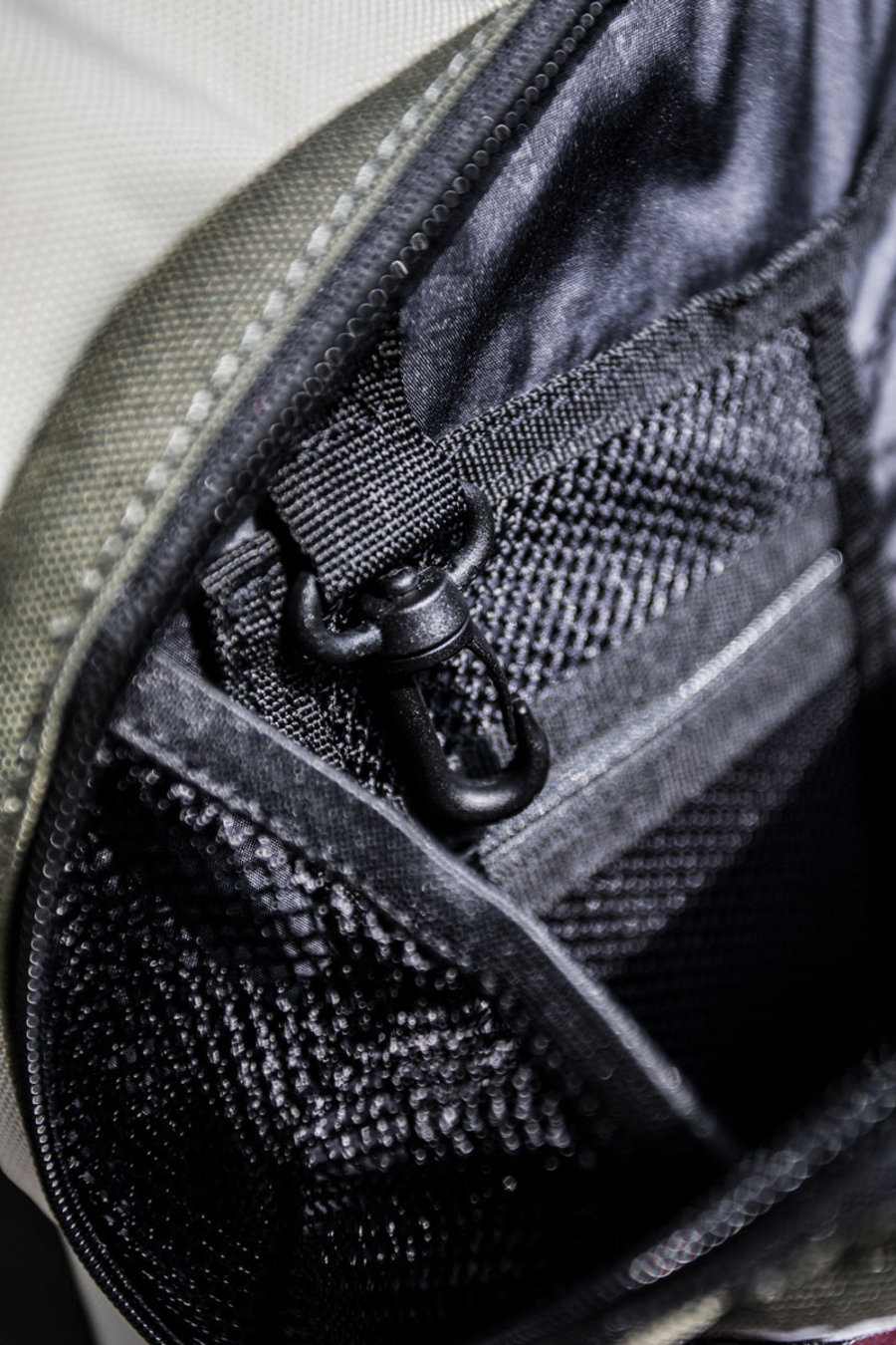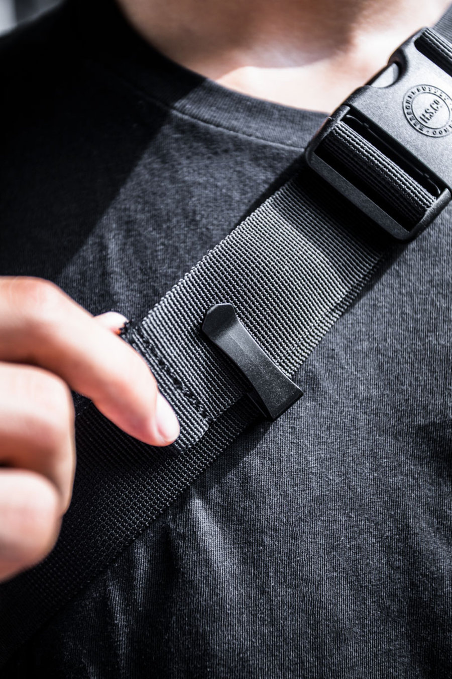 值得一提的是这款腰包在调节背带长度时,有一处非常人性化的设计,特别设计的固定夹让调节背带非常方便。