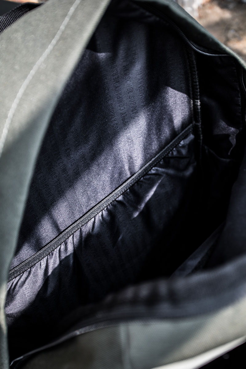 Kaine 双肩包以军绿、浅卡其和黑色为主调,白色的 “HERSCHEL SUPPLY COMPANY” 字样格外醒目。