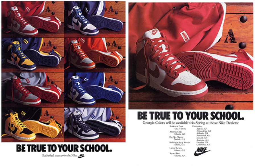 于是 Nike 就以 Air Jordan 1 的模样,为 8 所 NCAA 名校,打造了更具性价比的 Dunk 专属系列。