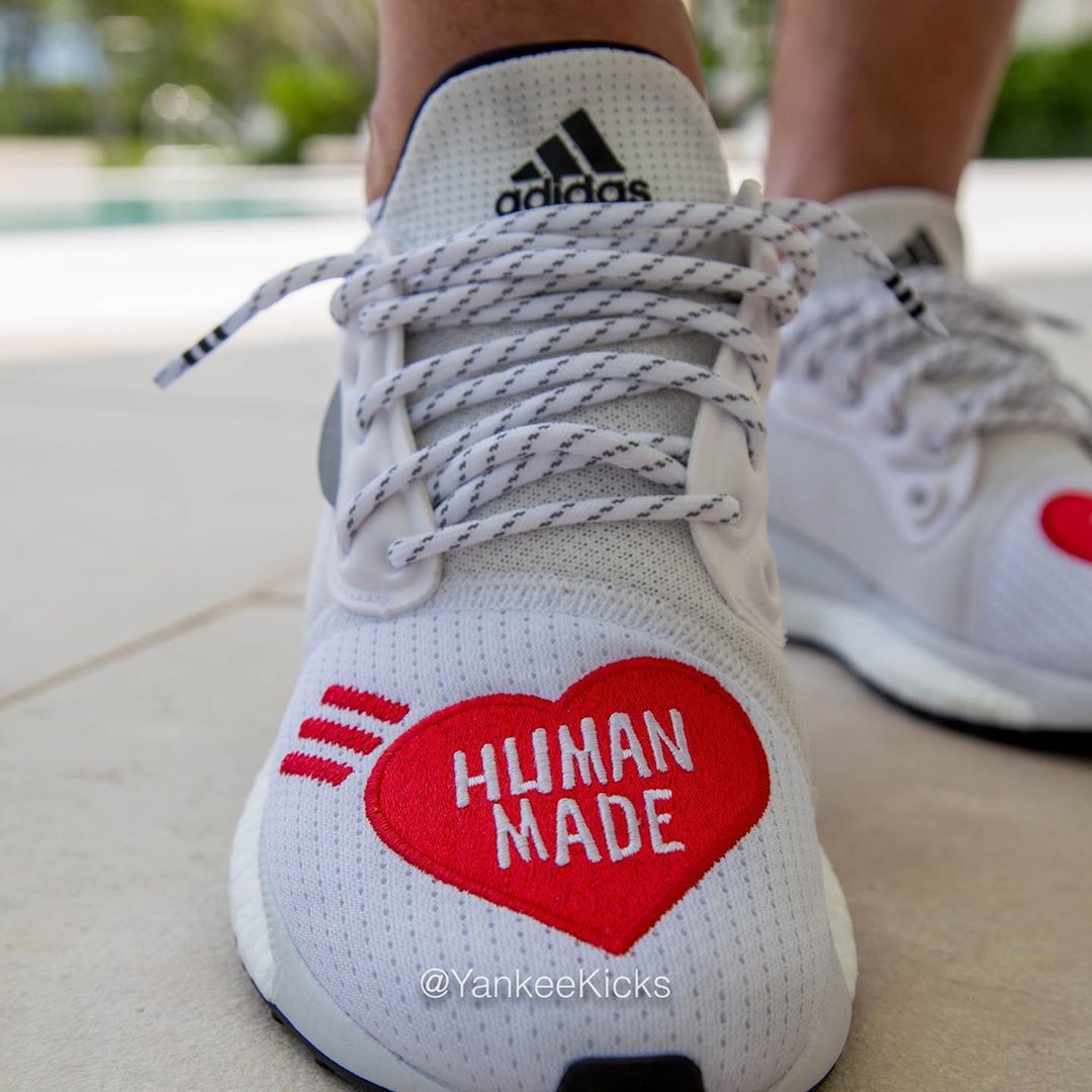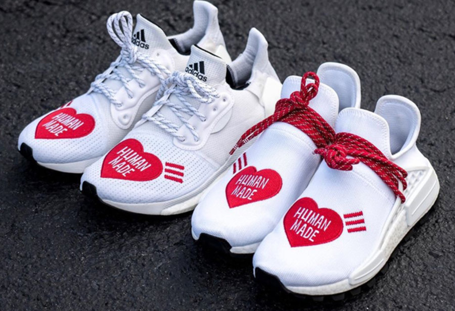 两双鞋的配色方案均延续了简约的纯白造型,红色刺绣的 Human Made Logo 点缀鞋面,彰显高贵联名身份。