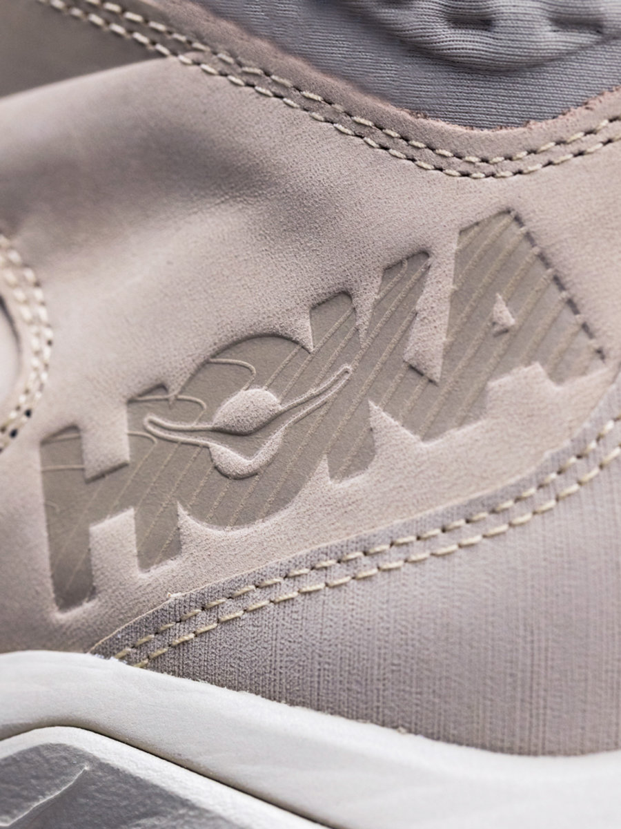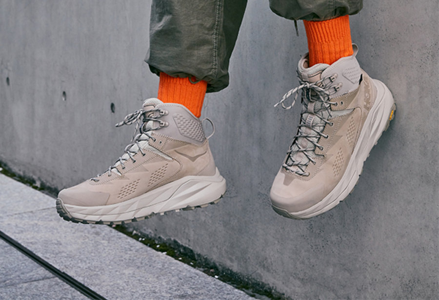 穿在脚上,与普通登山鞋的笨重脚感不同的是,这双 Hoka One One KAHA 轻质且包裹到位,让登山变得更简单。
