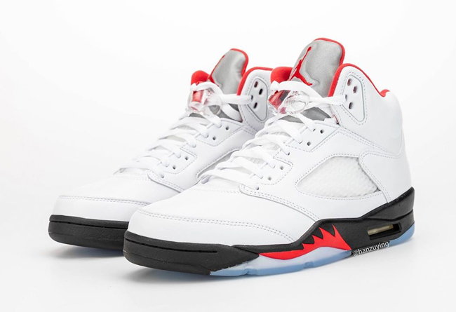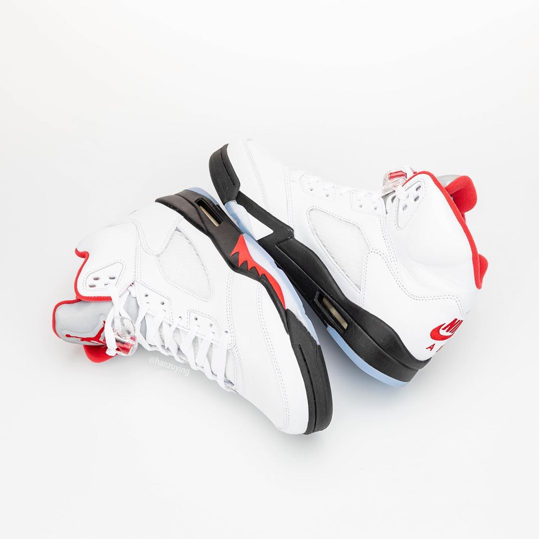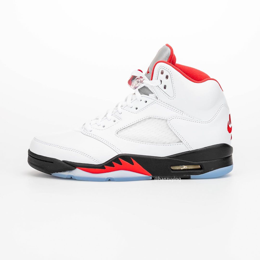 近日,由球鞋曝料博主 hanzuying 带来了一组即将复刻的新版本 Air Jordan 5 “Fire Red” 实物细节照。