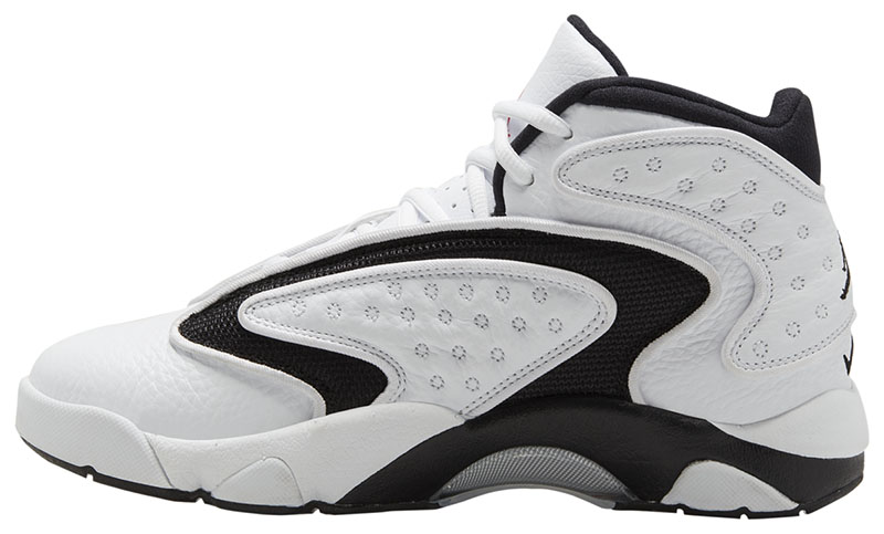秀气圆润的鞋头、布满斑点的皮革鞋身,带有着浓郁的 Air Jordan 13 设计元素!黑白鞋身营造的简约视觉,辅以鲜红 Jumpman Logo 点缀鞋舌、中底,成为当年女性球员脚下最为流行的战靴!