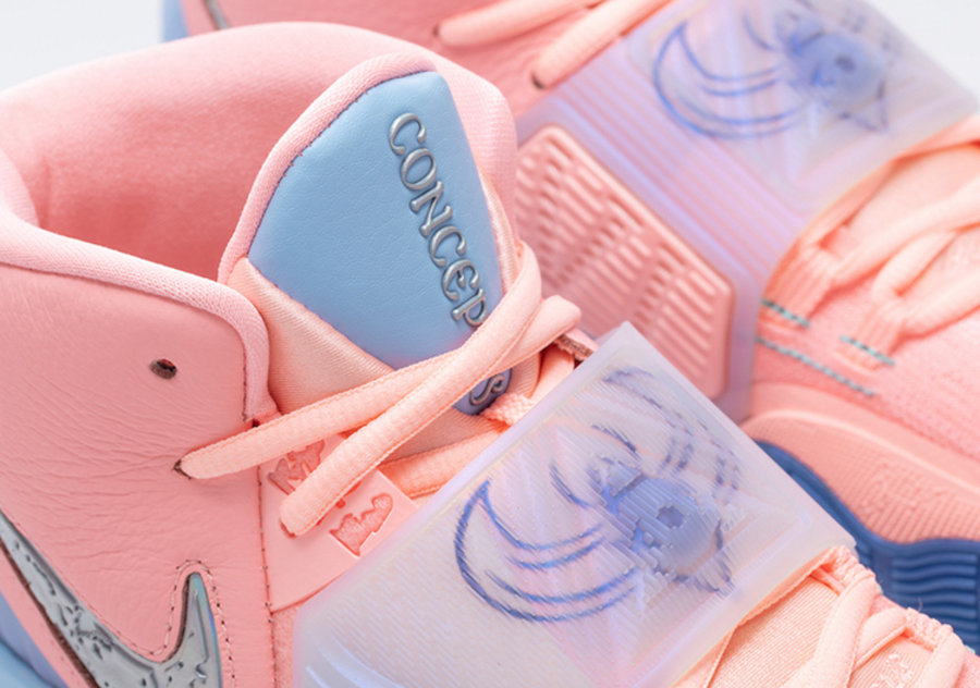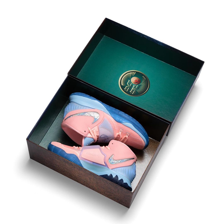 Swoosh 则以金属质感的幻彩蚀刻打造,最后鞋舌分别点缀 Concepts 与 Kyrie Logo,彰显独特的联名身份!