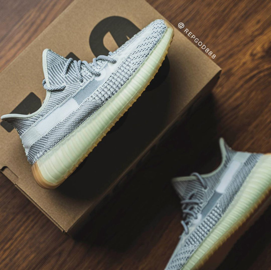 整双鞋延续坎爷一贯的大地风设计,鞋面酷似 Static 配色方案,采用白灰相间的 Primeknit 打造,营造清爽、利落的视觉感受,而中底则与亚限 Hyperspace 配色颇为相似,晶莹剔透的造型十分讨喜,生胶色外底也完美解决了氧化的后顾之忧。