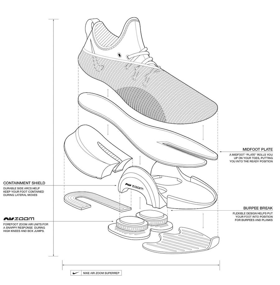 Nike Air Zoom SuperRep 作为一双专为高强度间歇训练(HIIT)打造的训练鞋,采用前后分离的流线型鞋底 + 前掌可视 Zoom 设计。整体造型酷似基普乔格完成马拉松「破 2」壮举所穿的 Nike AlphaFly。