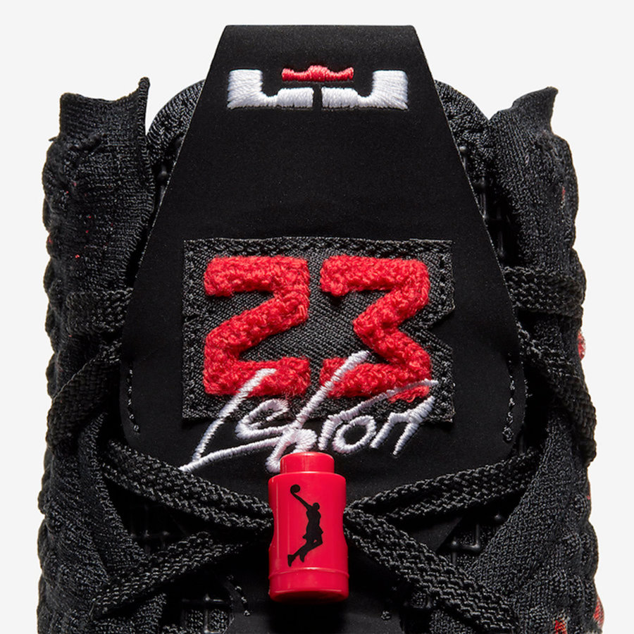整双鞋不仅融合 Air Jordan 6 经典红外线配色,鞋舌位置更是采用与 Air Jordan 6 标志性鞋带扣相同的设计,同时将鞋带扣上原本的 Jumpman Logo 改为詹姆斯的 Dunkman Logo,带来十分新颖的设计。