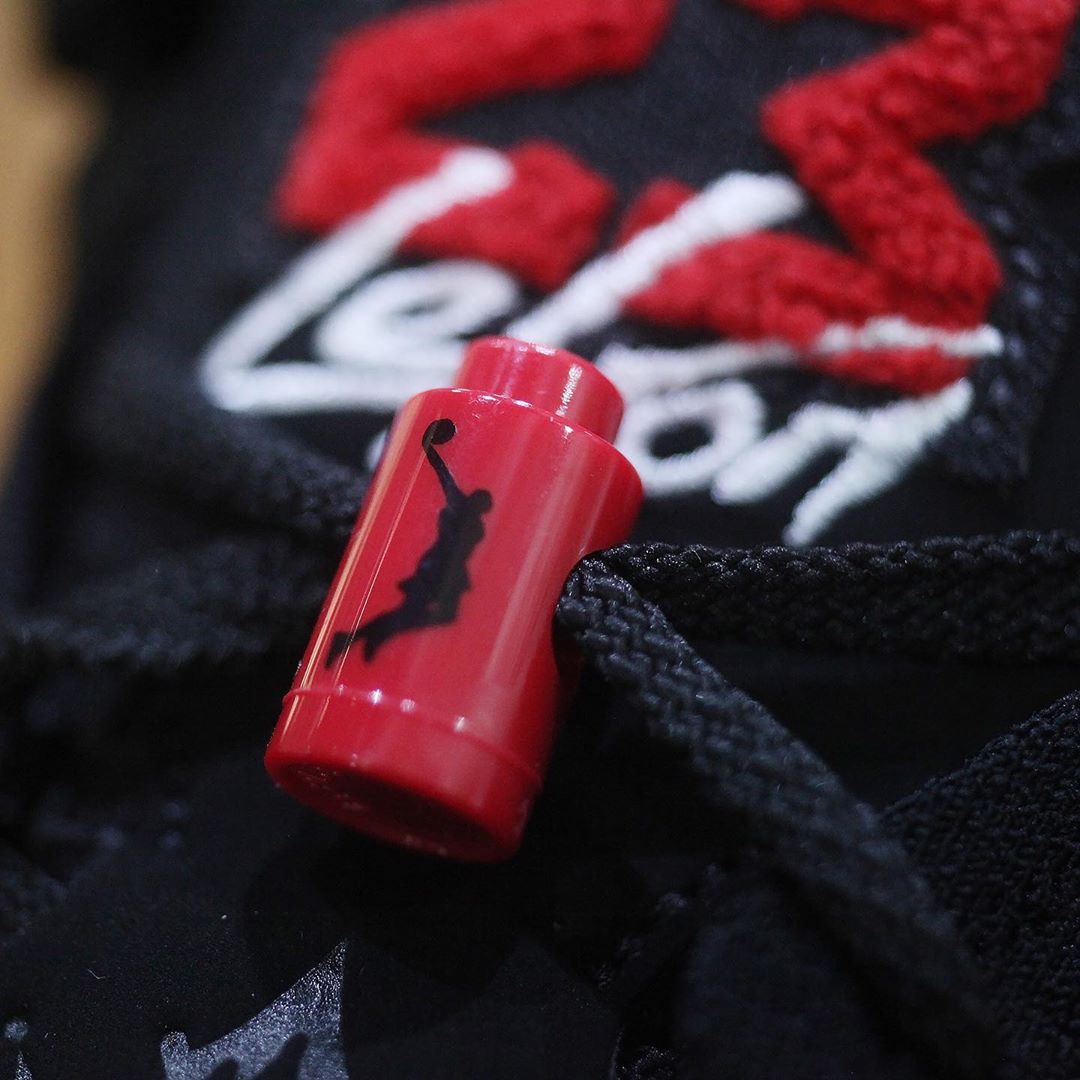 最大亮点当属采用与 Air Jordan 6 相同的标志性鞋带扣设计,将鞋带扣上原本的 Jumpman Logo 改为詹姆斯的 Dunkman Logo。