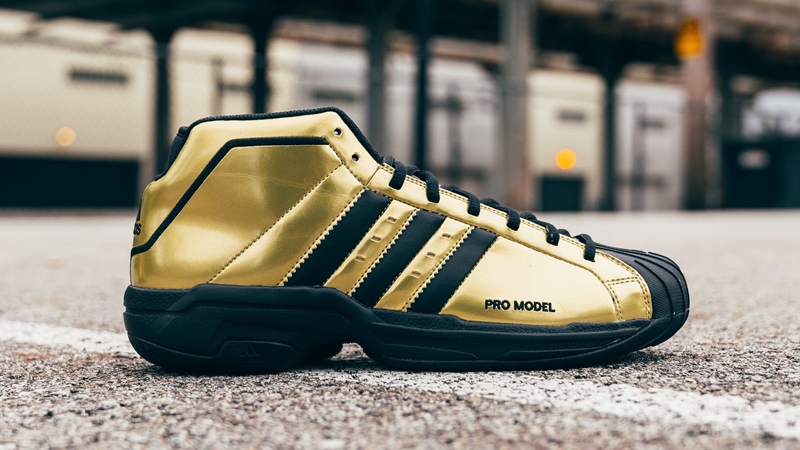 adidas 还为入选全明星赛的特雷·杨、英格拉姆、洛瑞等球员,准备了金光闪闪的 Pro Model 2G Shelltoe 50。