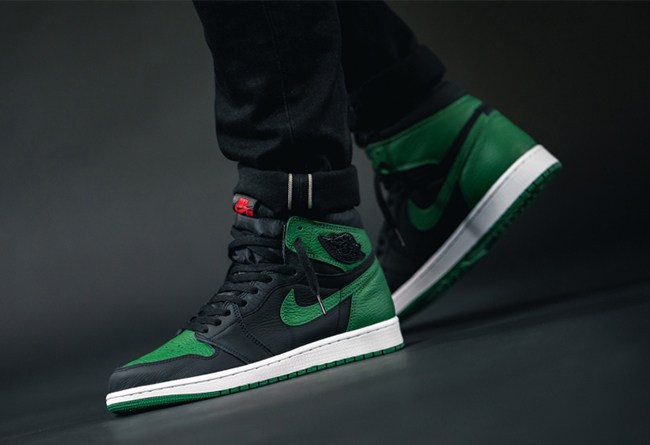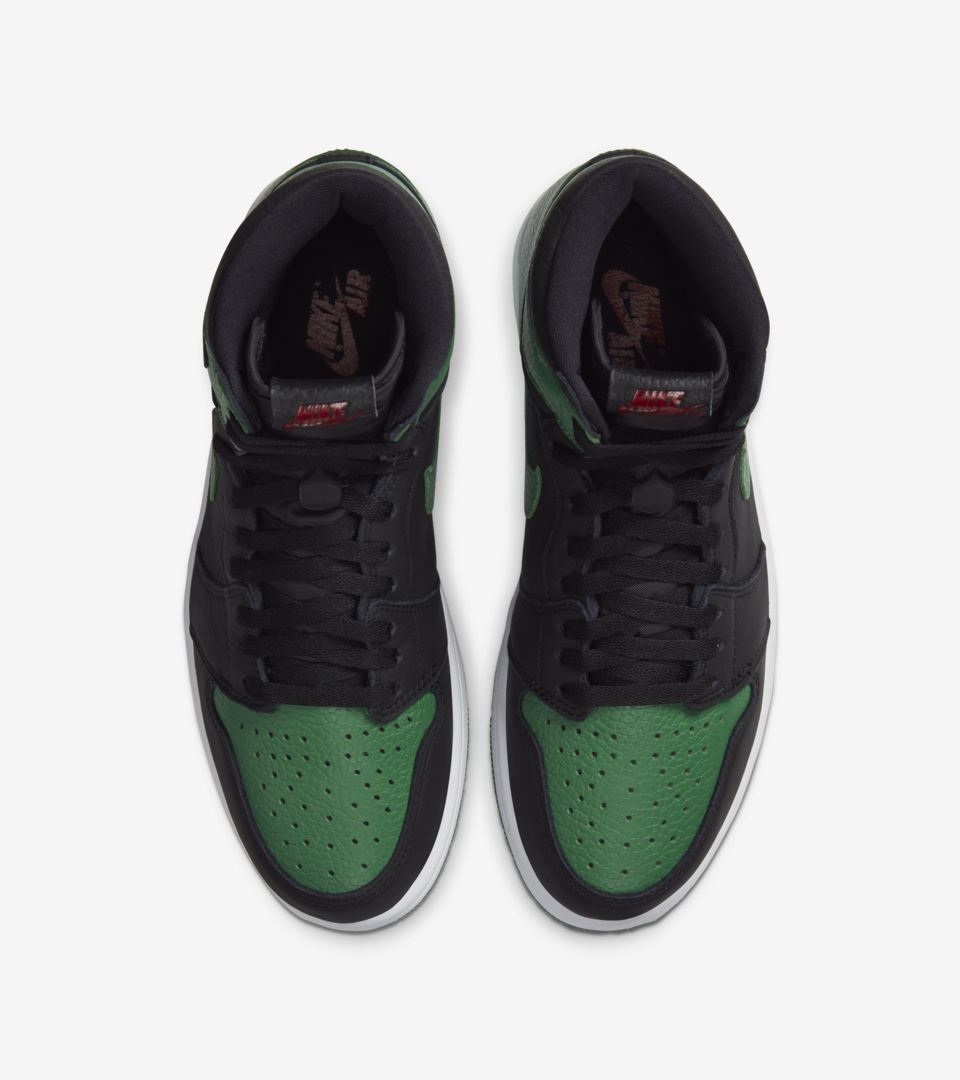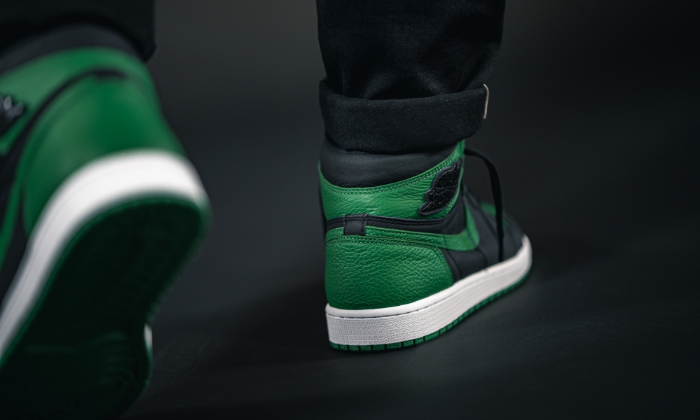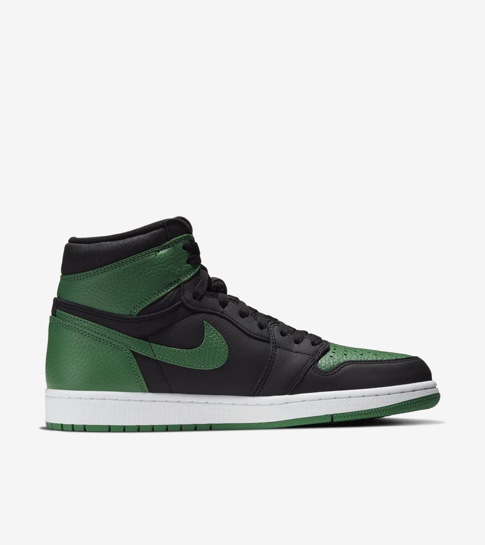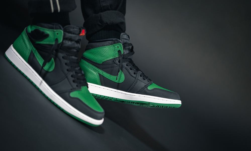 以最经典黑红 Air Jordan 1 的配色方案为原型,将红色替换为绿色带来全新视觉感受。