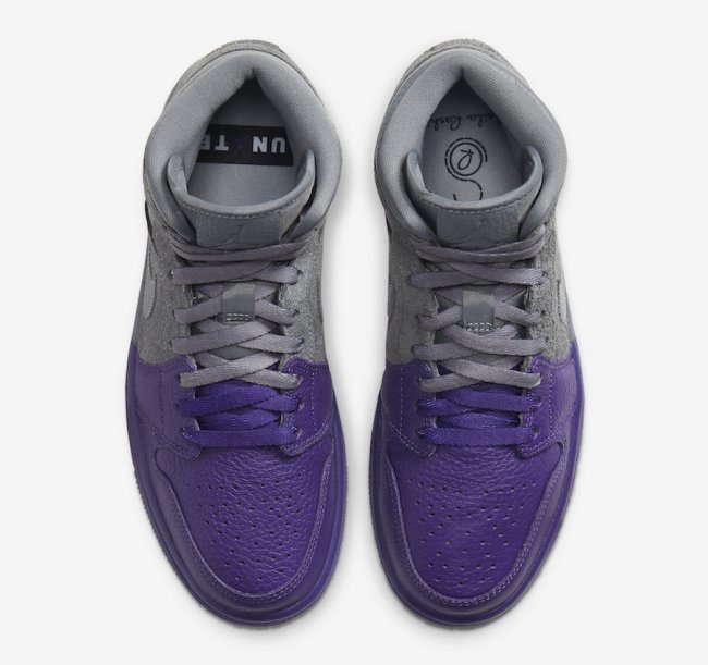 其一是紫脚趾 Sheila Rashid x Air Jordan 1 Mid,以高质感灰色翻毛皮搭配大胆的紫脚趾设计,极具看点。