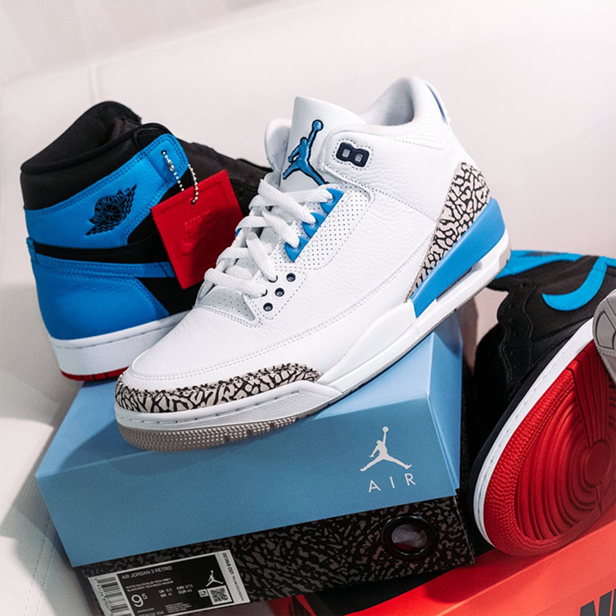 有着天价北卡大学专属配色装扮的 Air Jordan 3 “UNC”,成为不少鞋迷近期关注的重点鞋款,迷人的爆裂纹,清透的北卡蓝与白色荔枝皮鞋面搭配,整双鞋透着十足的简洁感与高级感。