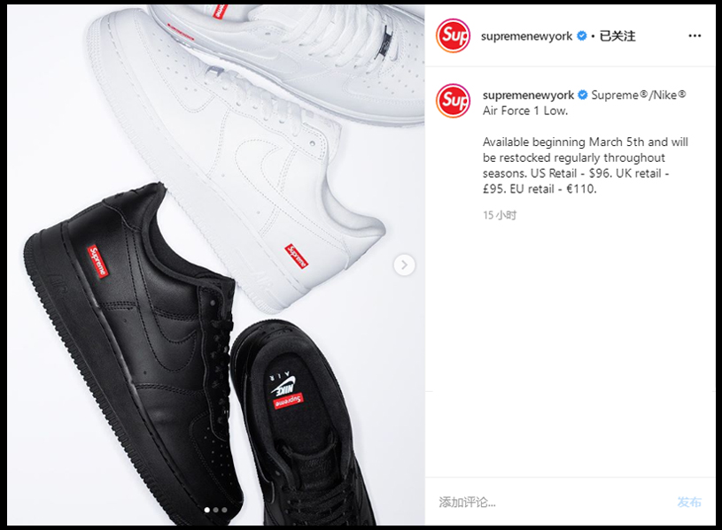 近日,Supreme 官方终于公布了联名 Air Force 1 的发售信息,将于本周发售!