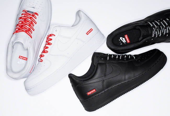 此次联名将推出白色款与黑色款,鞋身均以纯色示人,仅在后跟外侧与鞋垫上加入红色 Supreme Box Logo,以此展现联名身份。