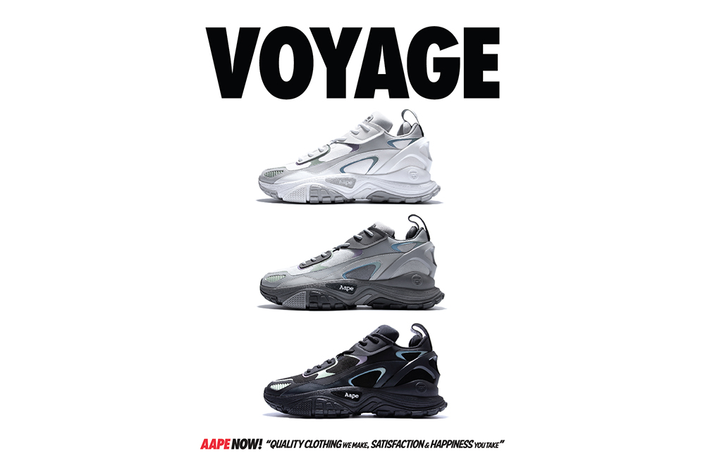 AAPE VOYAGE 为 AAPE 主线系列的时尚鞋款,名称「VOYAGE」带有远行和旅程含义,旨在突显缓慢的节奏感,更易搭配不同类型风格的服饰。
