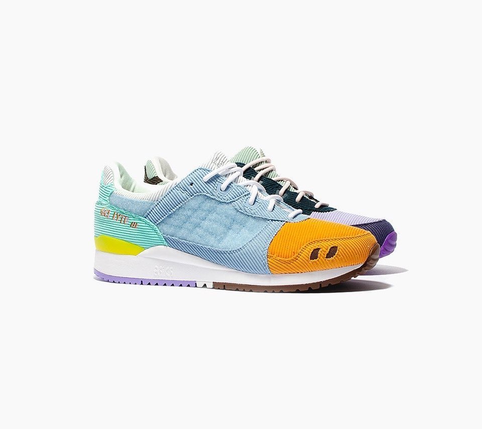 以三十周年的经典鞋款 Gel Lyte III 为设计蓝本,延续最具知名度的拼接彩色灯芯绒设计,辨识度极高!