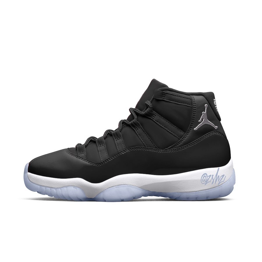目前还没有具体的文字消息和实物图片,球鞋爆料账号 @zsneakerheadz 释出了效果渲染图,这是一双黑色鞋身搭配白色中底的 Air Jordan 11 新品,鞋帮 Jumpman Logo 飞人并不是刺绣工艺,而是颇具现代感的金属质感小飞人。