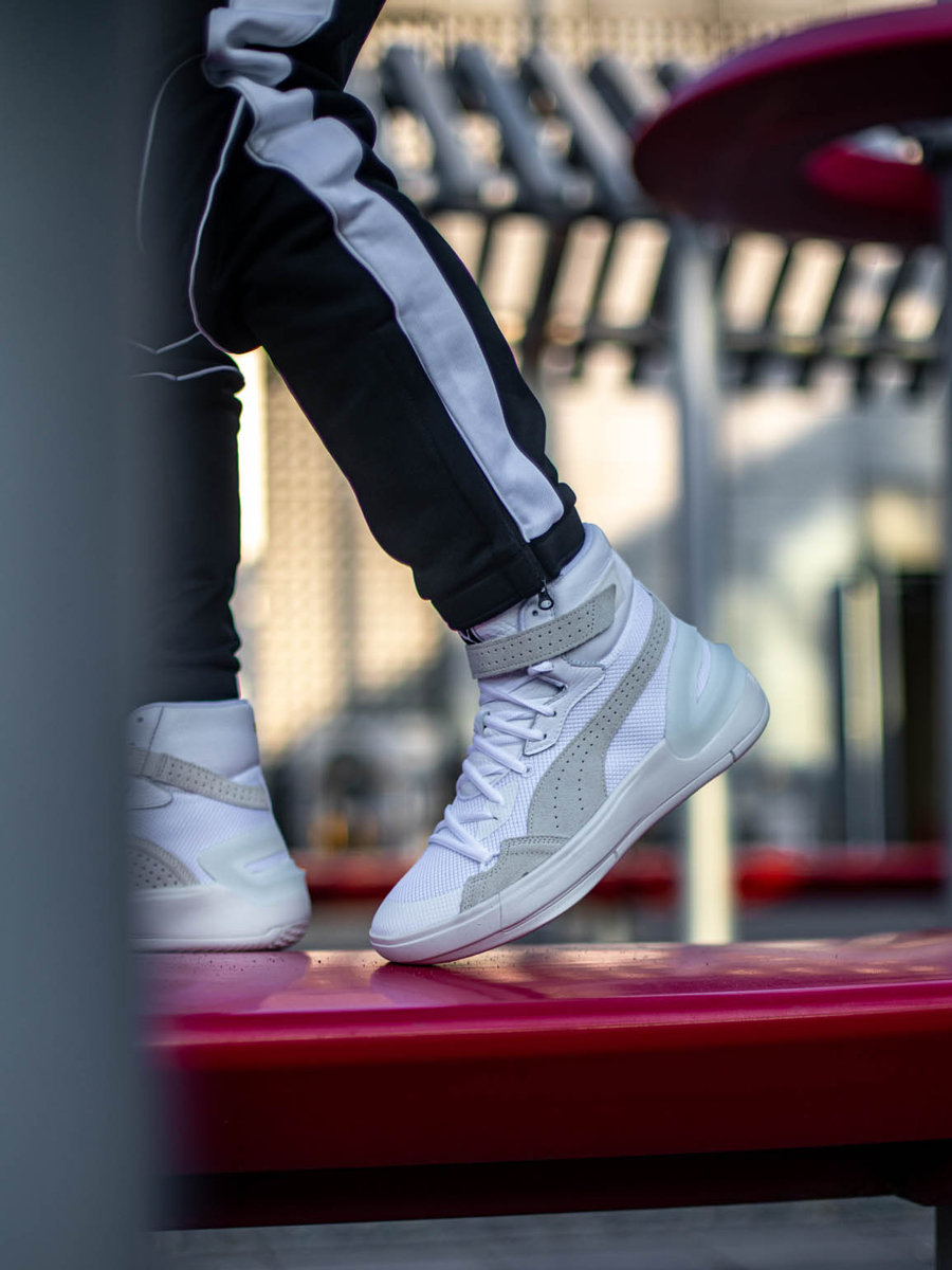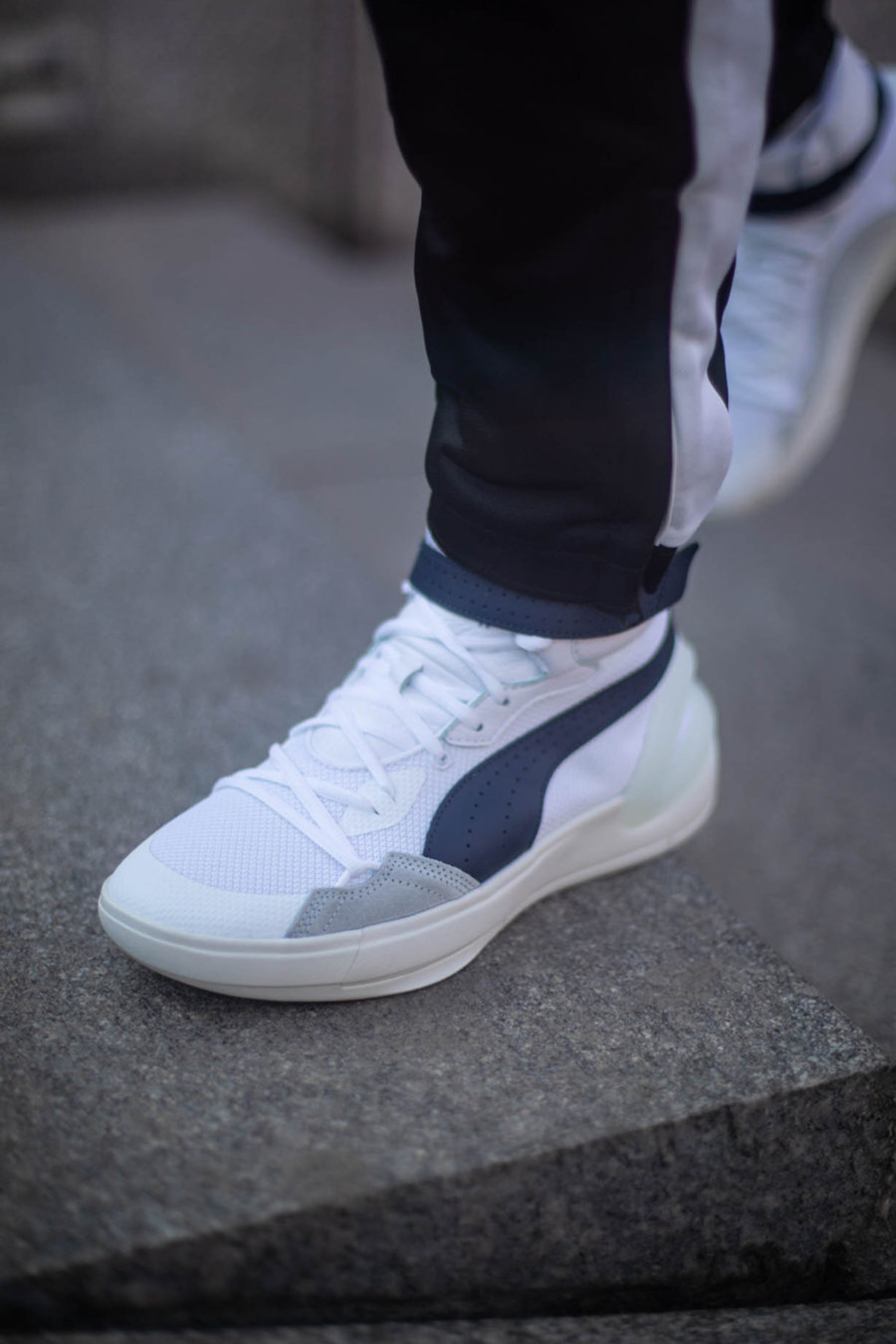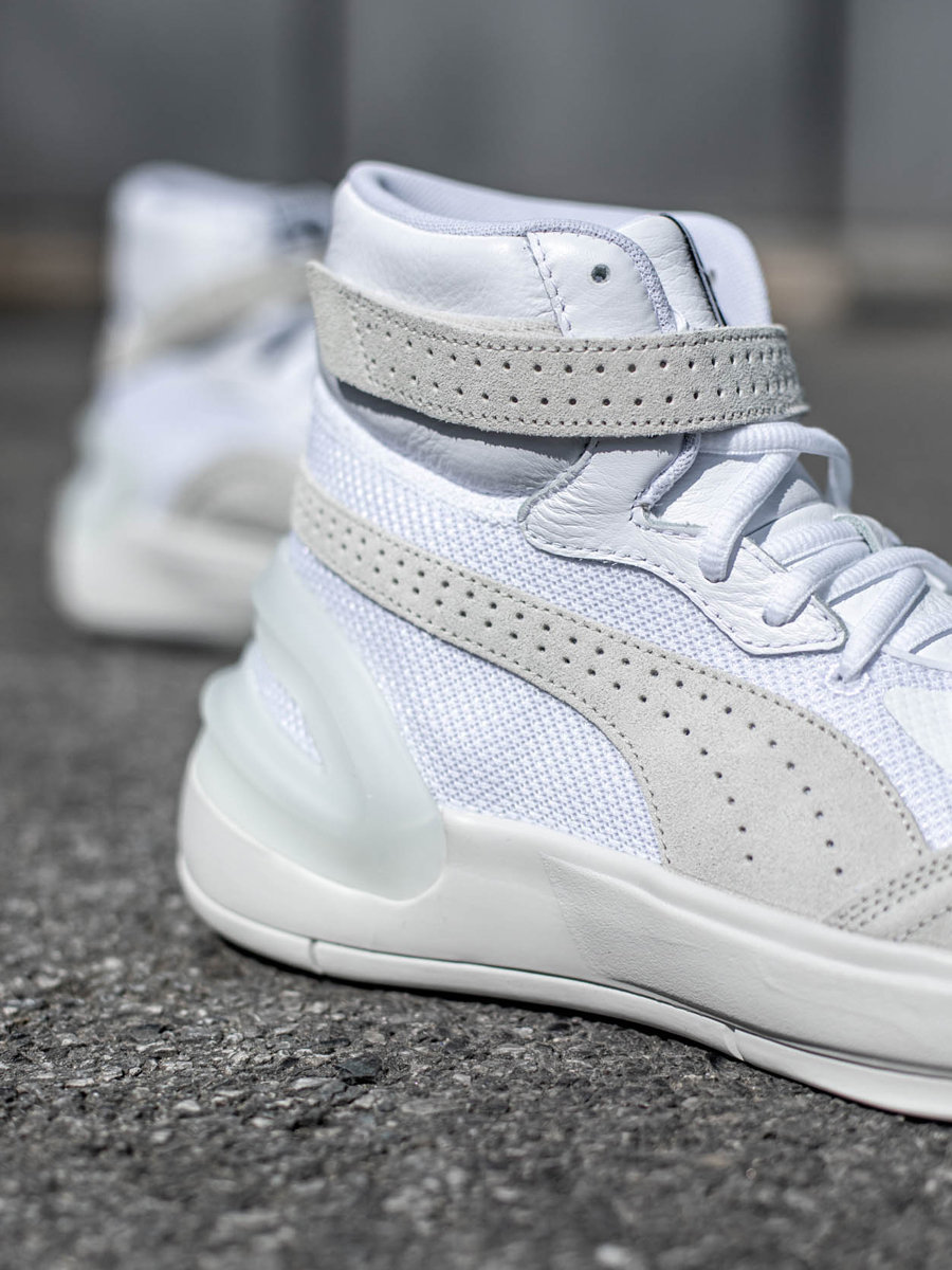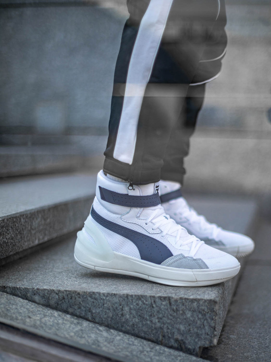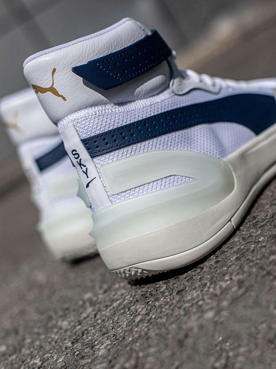 融合实战鞋与潮流质感的设计语言,呈现在复古韵味十足的 PUMA Sky Modern 上,可谓是颠覆常规篮球鞋的前卫代表。