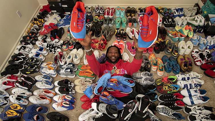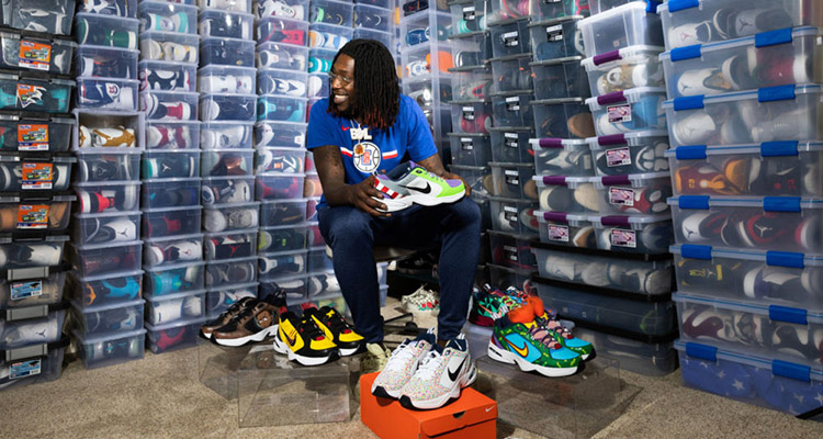 酷爱复古风格的哈雷尔热衷于收藏 Air Jordan 系列以及 Reebok Answer 系列,同时还有不少 LeBron 系列以及 Kobe 系列球鞋。