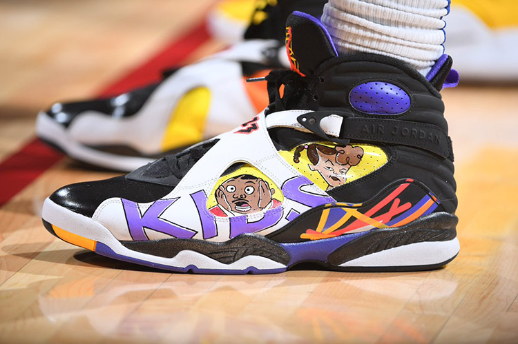 同时哈雷尔也会将这些带有卡通人物手绘的球鞋穿上赛场。