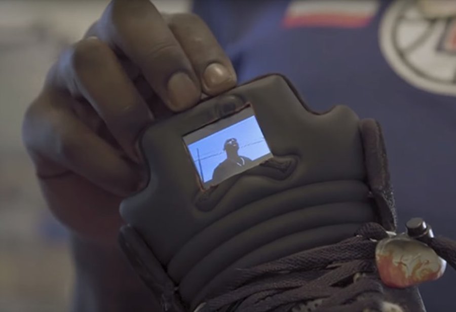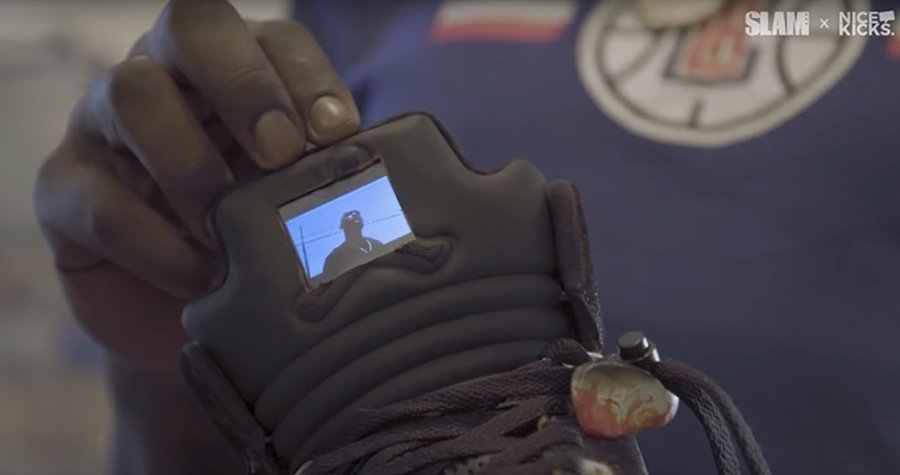 在哈雷尔拥有的众多定制鞋款中,一双鞋舌带有电子屏幕的 Air Jordan 5 可以说相当罕见。屏幕上可以播放他最喜欢的说唱歌手 Tupac 演唱的《To Live and Die in L.A.》的 MV。