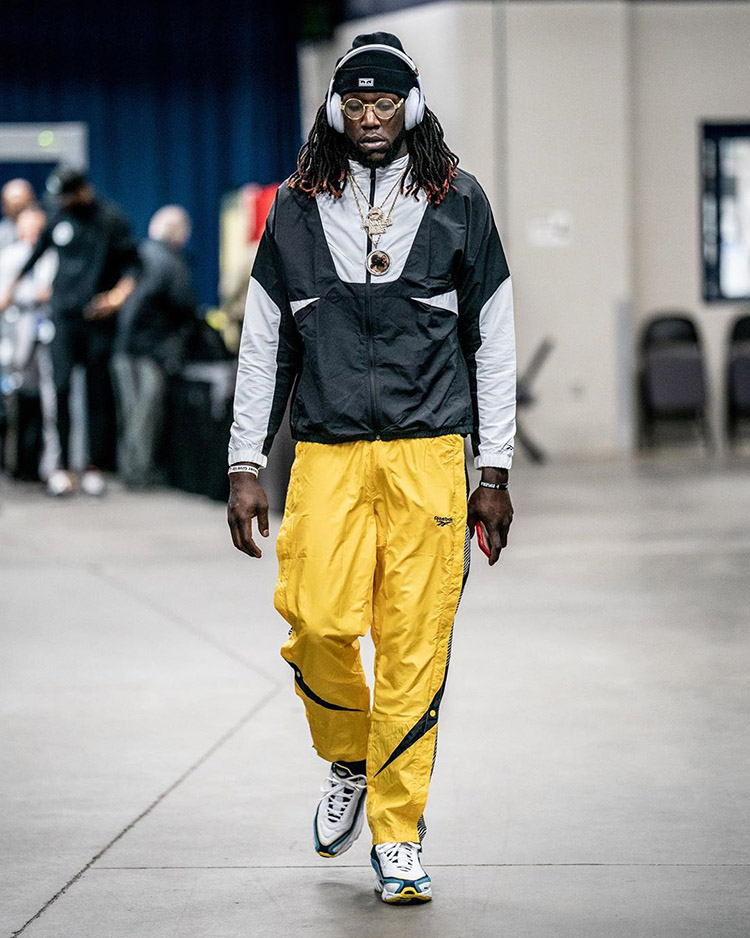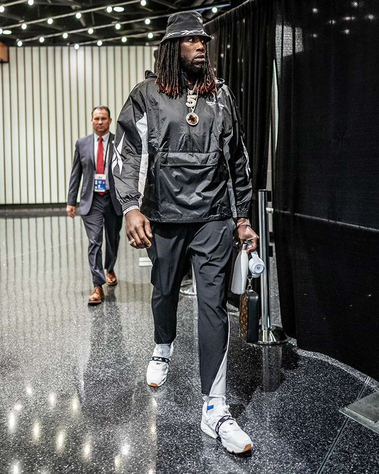 哈雷尔上脚的 Reebok Shaq Attaq 同样极具复古气质,作为专为奥尼尔打造的战靴,想必沙克本人也不会想到如今还能有人将它穿上赛场。