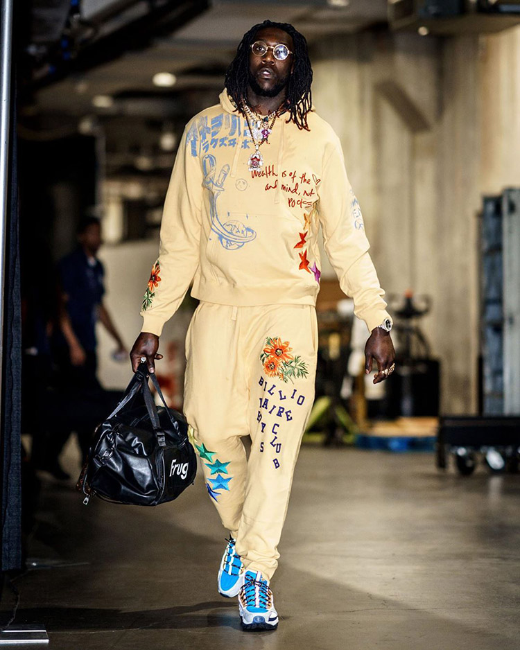 除此之外,哈雷尔热衷的定制鞋款多半出自洛杉矶的定制团队 Kickstradomis,而非我们熟知的 The Shoe Surgeon。