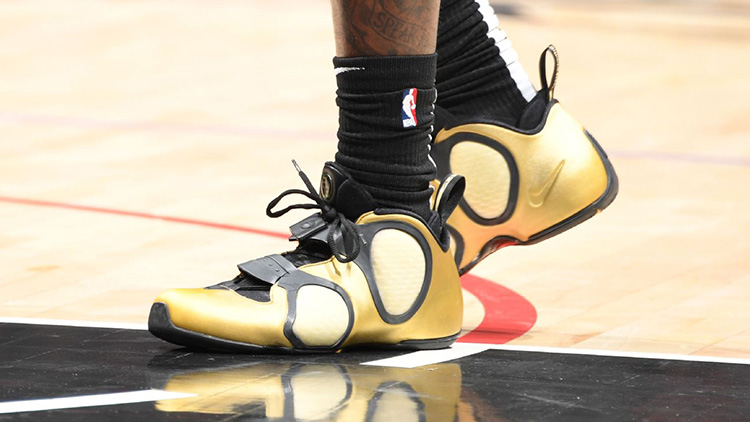 2002 年发售的 Nike Air Flightposite III 至今已有 18 年历史,能够把这双鞋穿上 NBA 赛场的想必也只有哈雷尔了。
