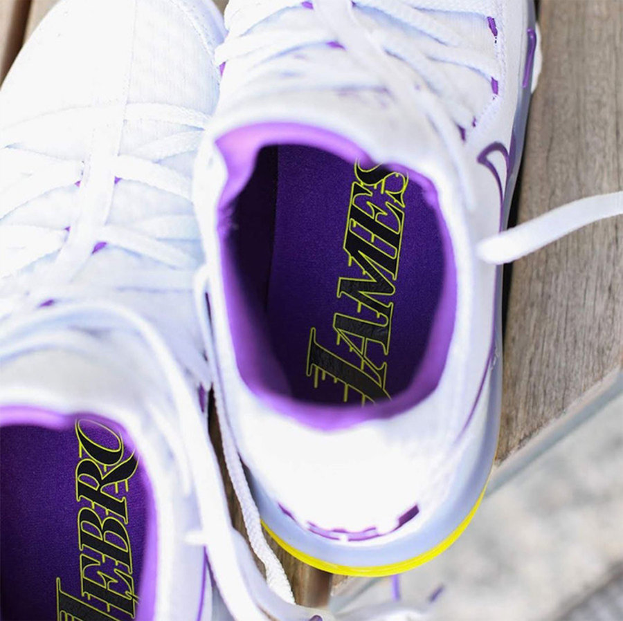 内衬采用紫色呈现,同时鞋垫上带来湖人队标志性名称,彰显詹皇洛杉矶之王的气质。