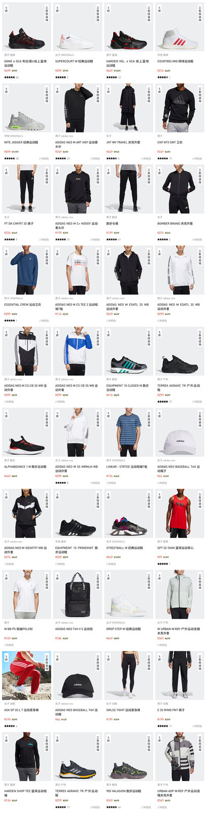 鞋款方面,像热门战靴 DAME 6、Harden Vol.4,Ultra Boost 跑鞋系列以及高人气潮流鞋款 Stan Smith、贝壳头 Superstar 等都有大幅折扣,不少都是历史新低!