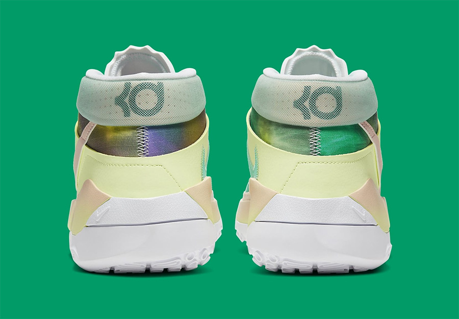 4 月下旬还有一双清新感受的 KD13 “Chill”,灵感来源于杜兰特的 R&B 歌单,鞋面的炫彩效果呈现出流动感,让人仿佛置身音乐的美妙场景中。