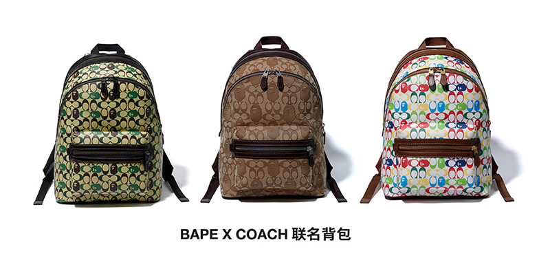 涵盖双肩背包、挎包以及钱包等单品,将 Coach 最为经典的 Monogram 纹理结合 BAPE®️ 猿人头像,带来视觉效果上的全新感受。