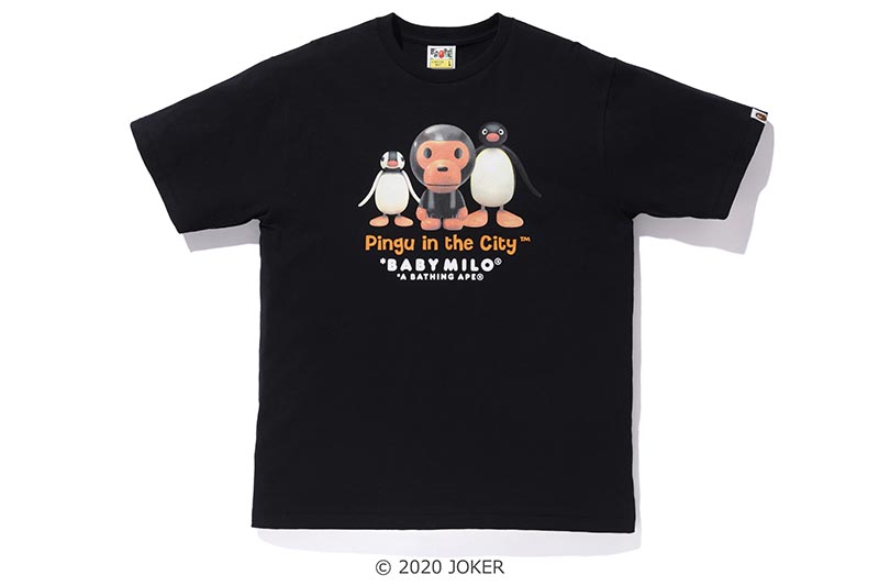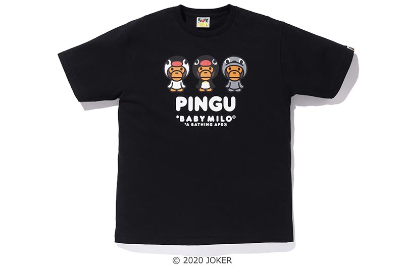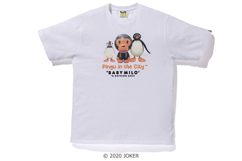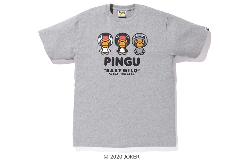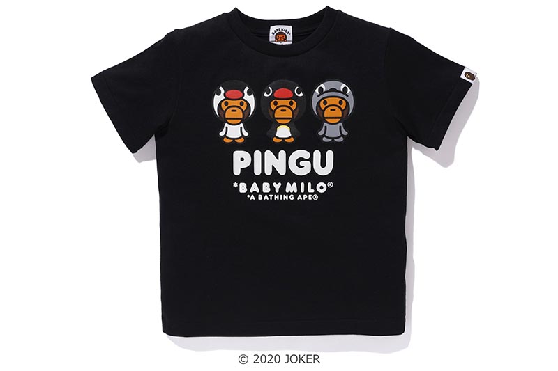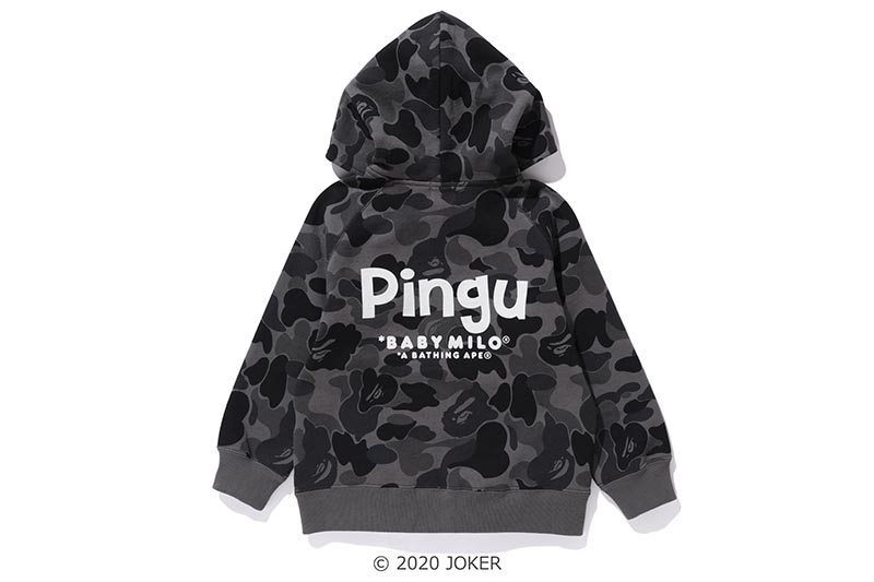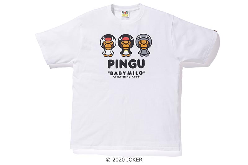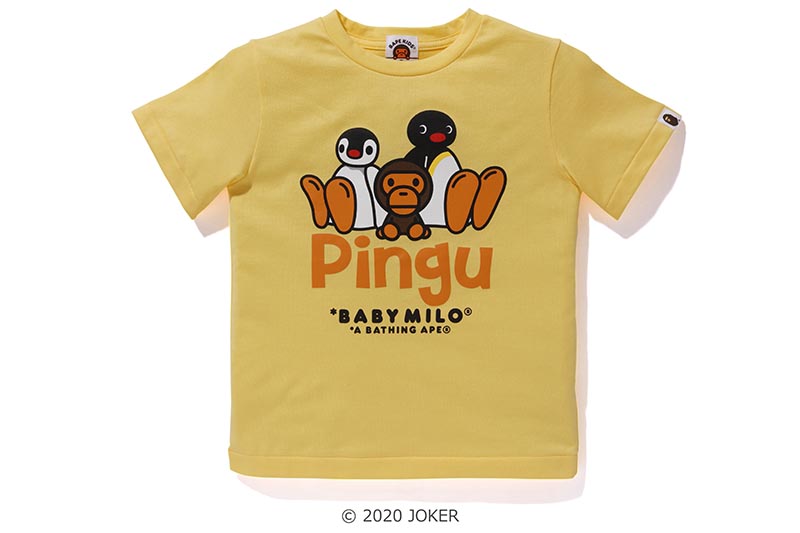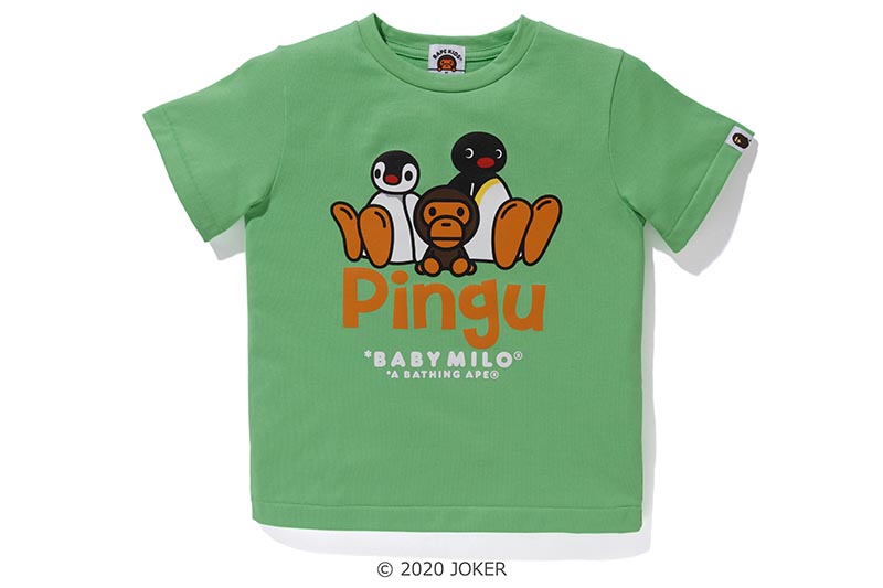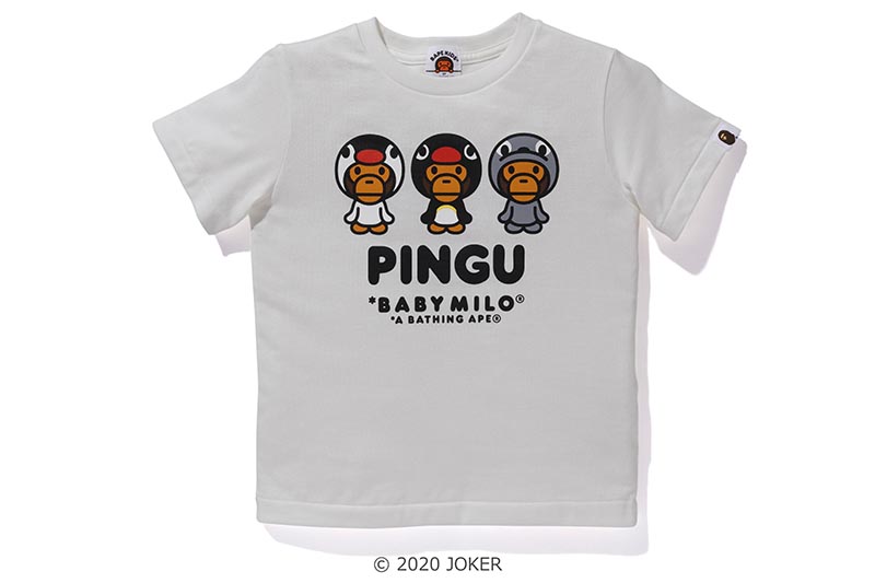 本次 BAPE® x PINGU 联名将帝企鹅哥哥 PINGU 和它的妹妹 PINGA、好朋友海豹 ROBBY 与 BABY MILO® 同框登场。涵盖成人及儿童的短Tee、帽衫、卫衣等众多单品,散发出童心未泯的可爱气氛。