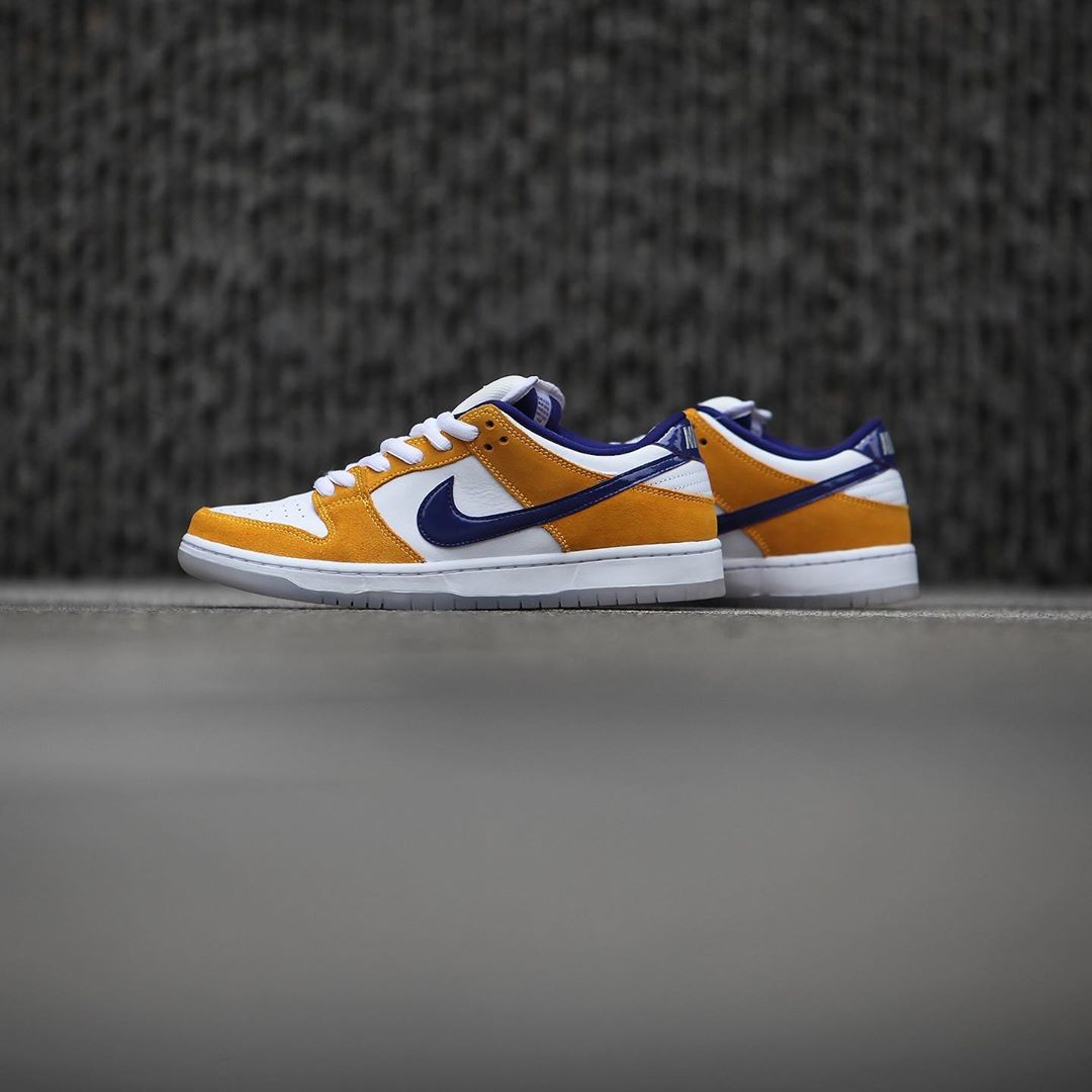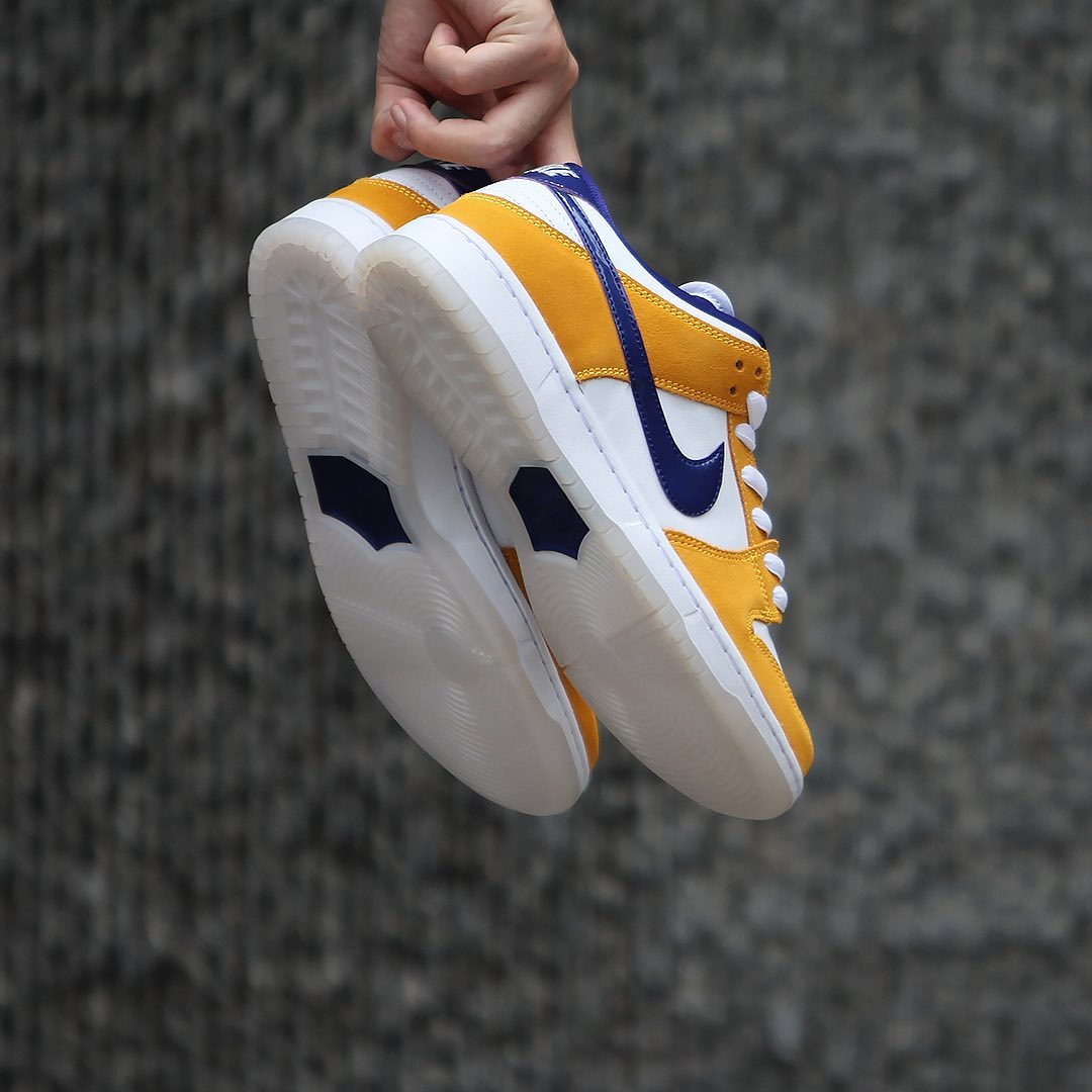 由于酷似洛杉矶湖人队的撞色设计,导致这双 Dunk SB Low 新品,也被冠以「小湖人」的昵称。