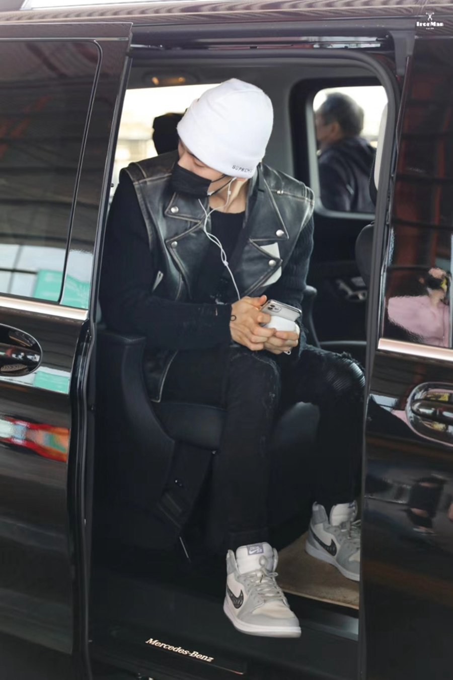 NINE PERCENT 成员王子异,上月机场被拍到上脚 Dior x Air Jordan 1 Hi 联名。