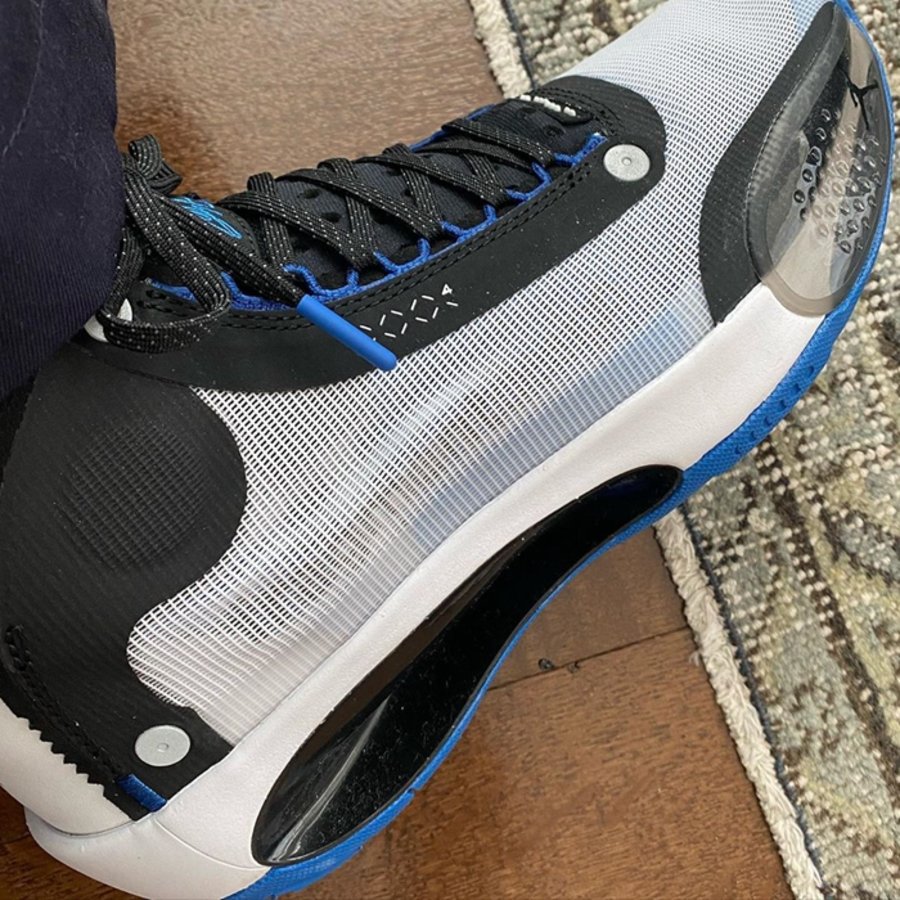 而近期大侄子还晒出一款 Air Jordan 34 PE,与年初市售的镭射配色大货不同,鞋舌改为个人 Logo。