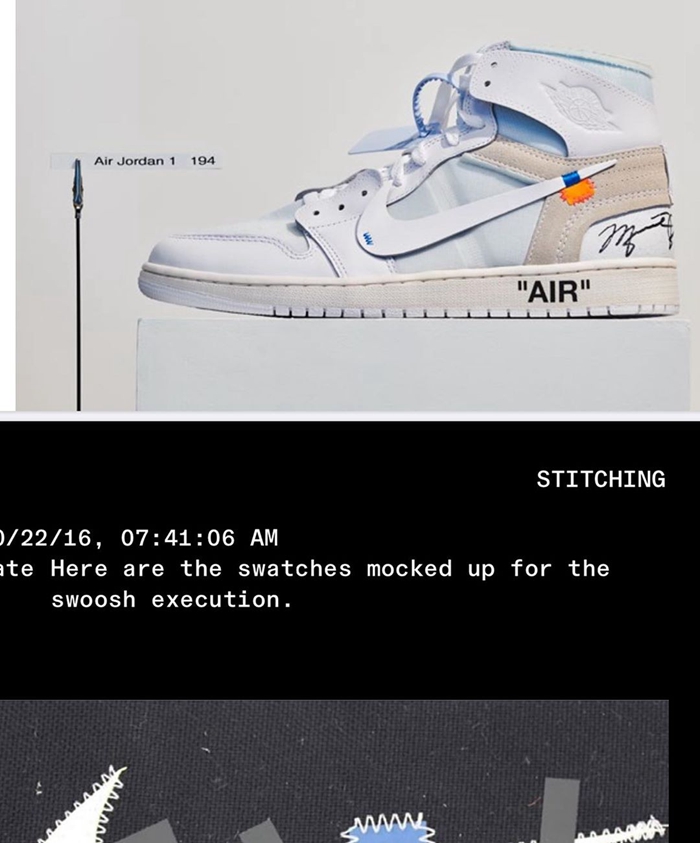 Virgil Abloh 在 Ins 晒出带 Michael Jordan 亲签的 OFF-WHITE x Air Jordan 1 早期 Sample 样品。