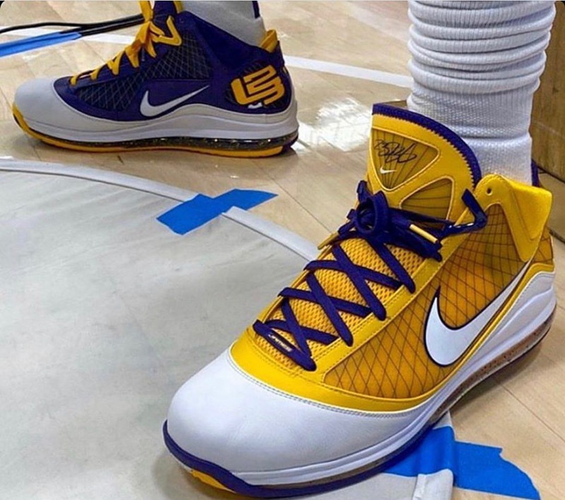 早在赛季开始前的媒体日勒布朗本人亲自上脚,这双湖人鸳鸯 LeBron 7 一经曝光就令无数玩家眼馋不已。