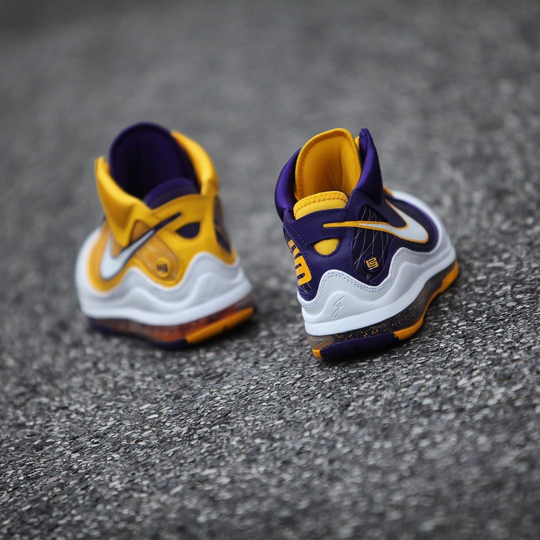 说回球鞋本身,整双鞋以湖人标志性的紫、金为主调,双脚设计还采用了鸳鸯效果,搭配白色皮革点缀,呈现出纯正的湖人血统。