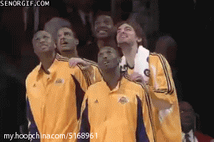 早年间湖人替补席的吃瓜表情,热度堪比杨少侠的问号脸。