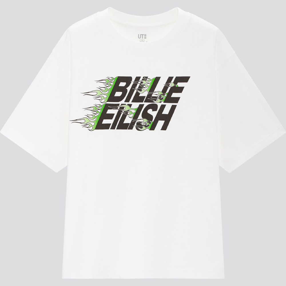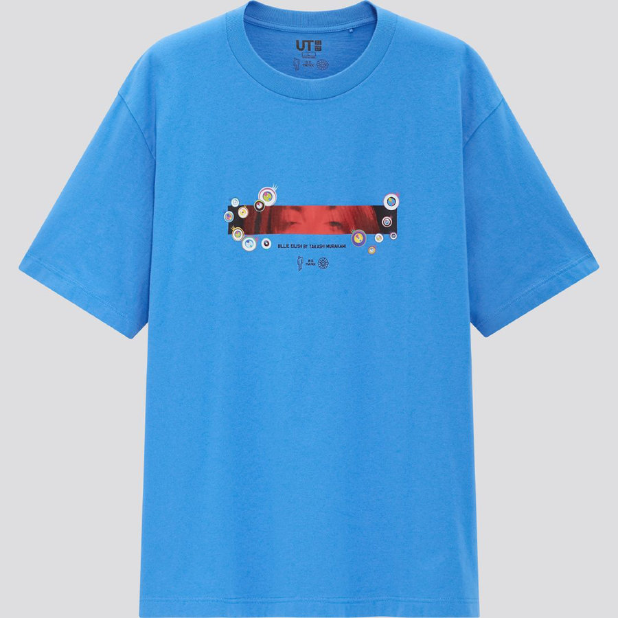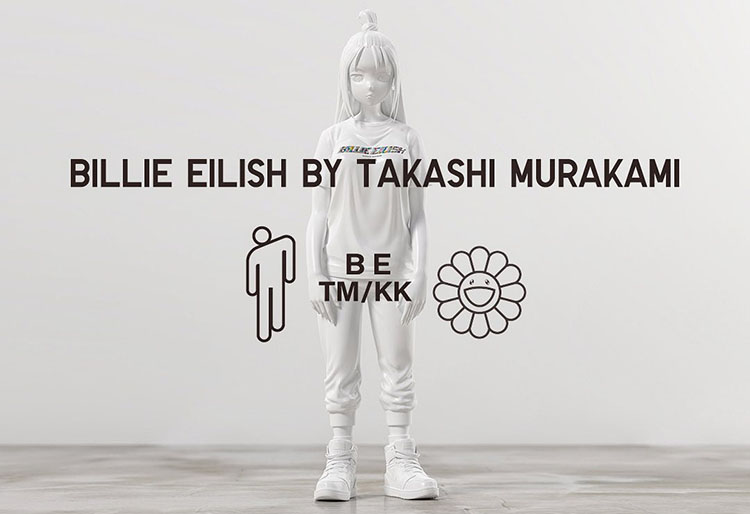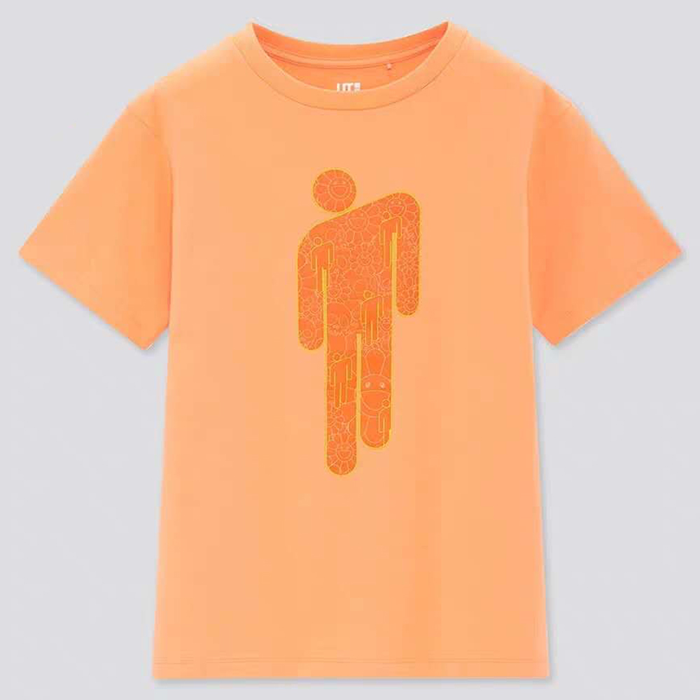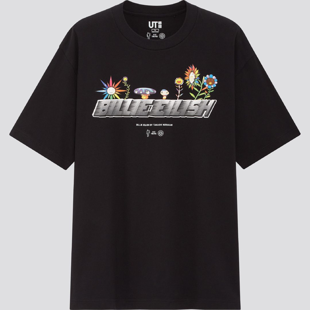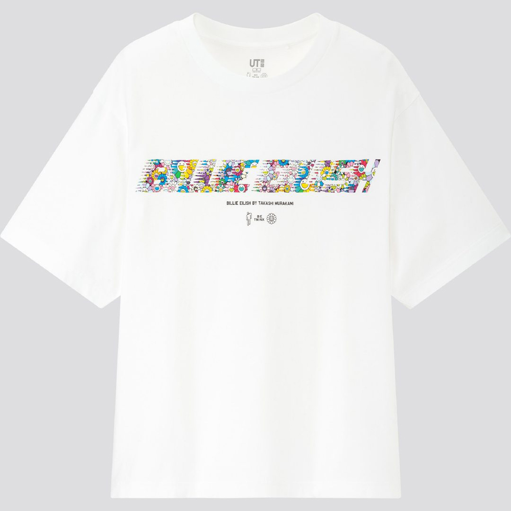 仍然以村上隆最具标志性的太阳花作为主视觉元素,同时结合了 BILLIE EILISH 字样以及碧梨个人品牌 blohsh 的 “高低肩” 人像 Logo。