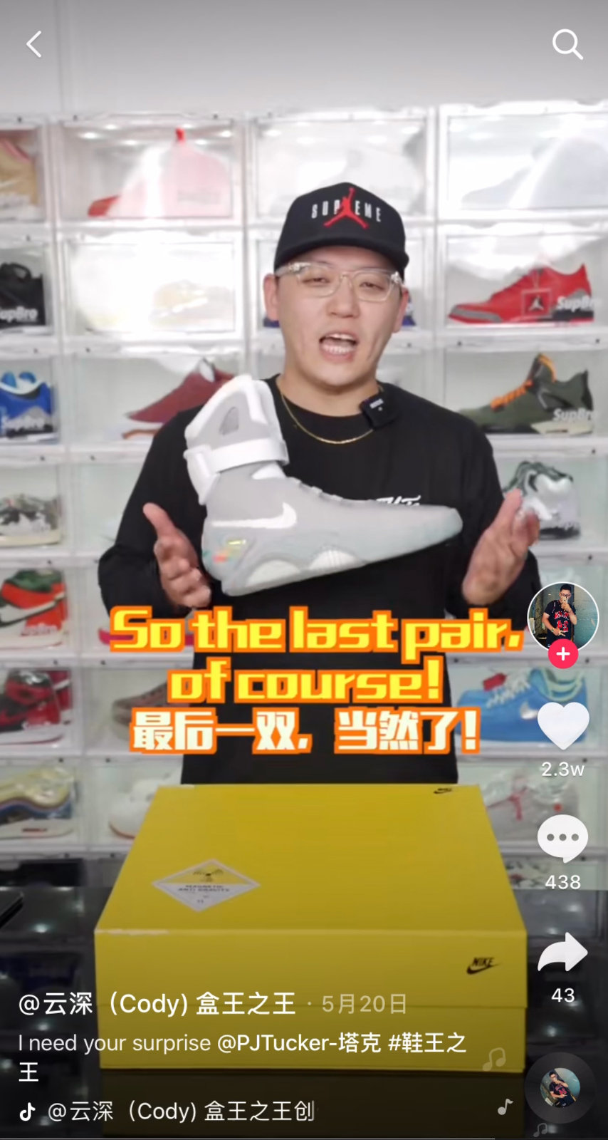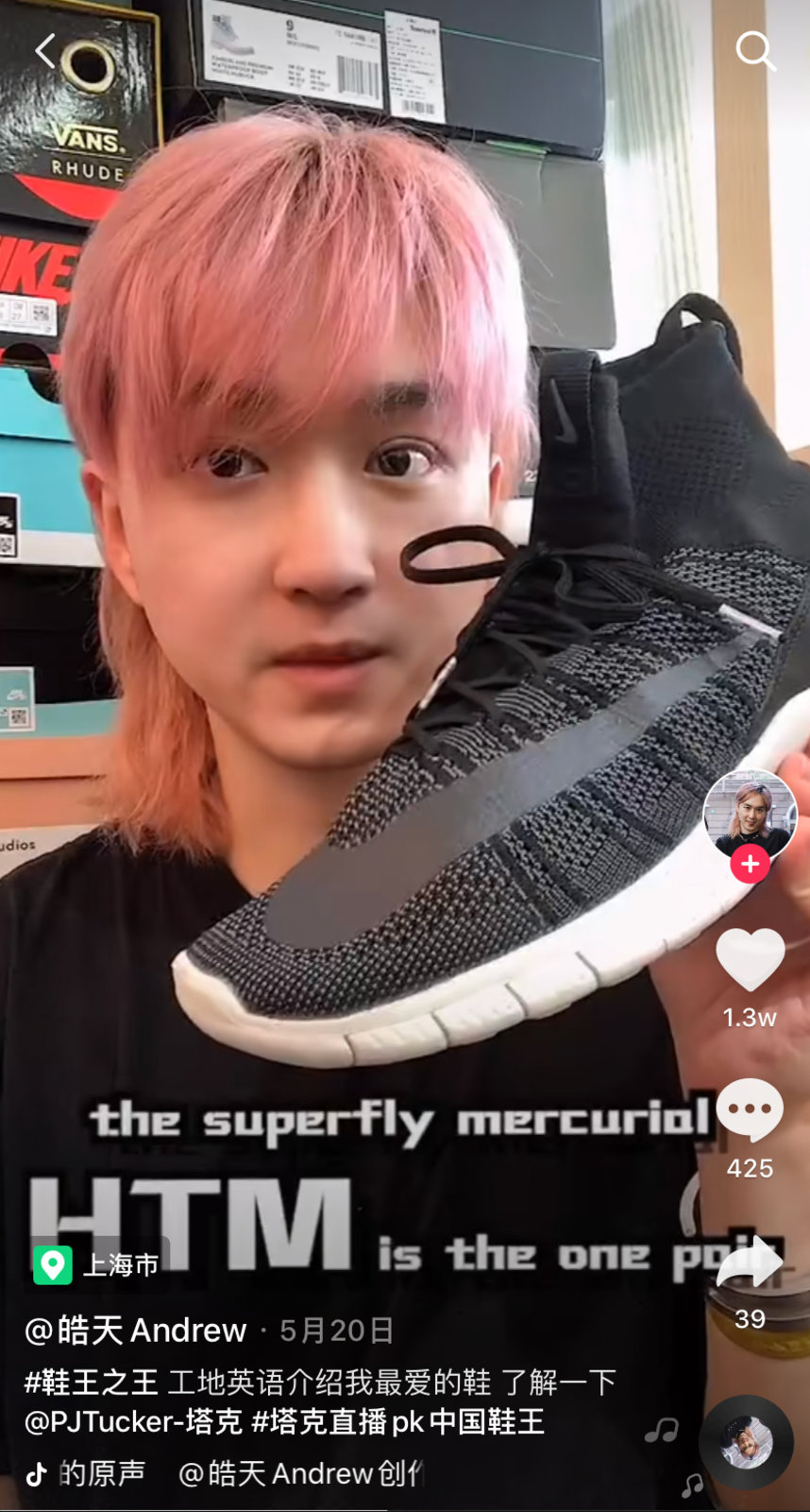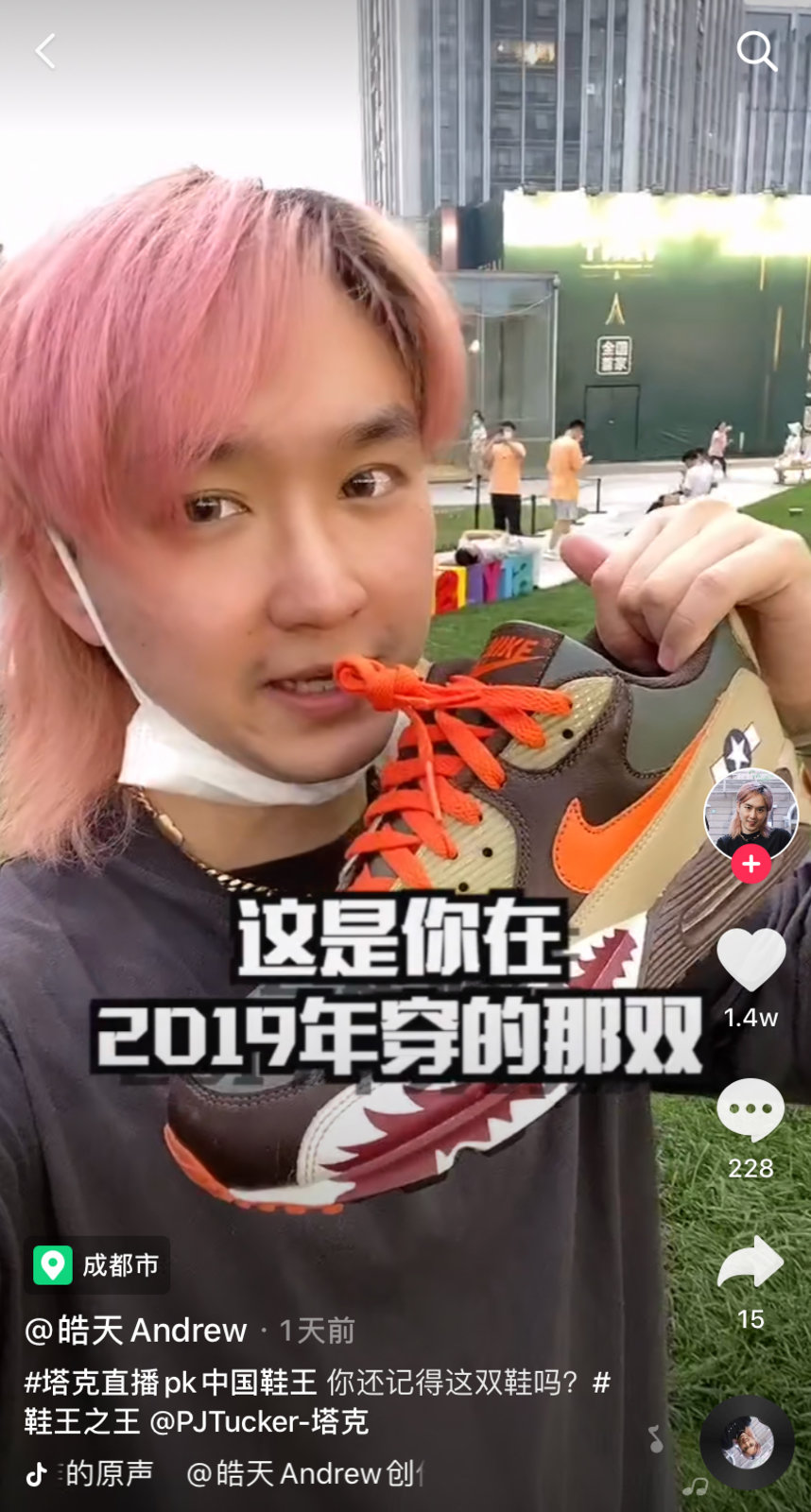 #鞋王之王 挑战的抖音话题播放量超过了 4 亿!塔克直播更是有 300W 人次的观看!