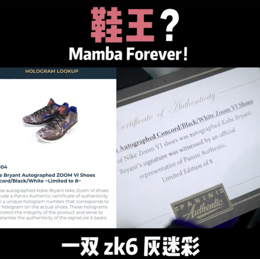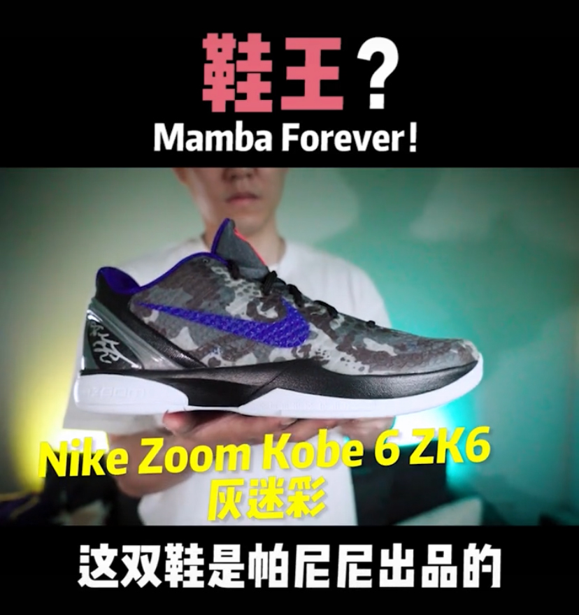 他带来的这双,是由帕尼尼出品的 Nike Zoom Kobe 6 灰迷彩。