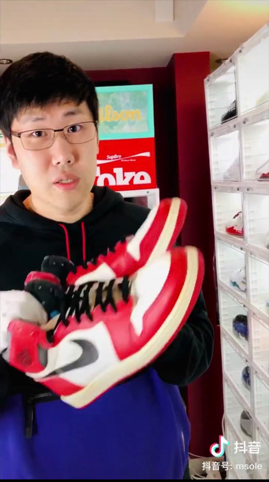 第一波晒鞋,他晒的是历史上第一双市售 Air Jordan 1,1985 年生产。