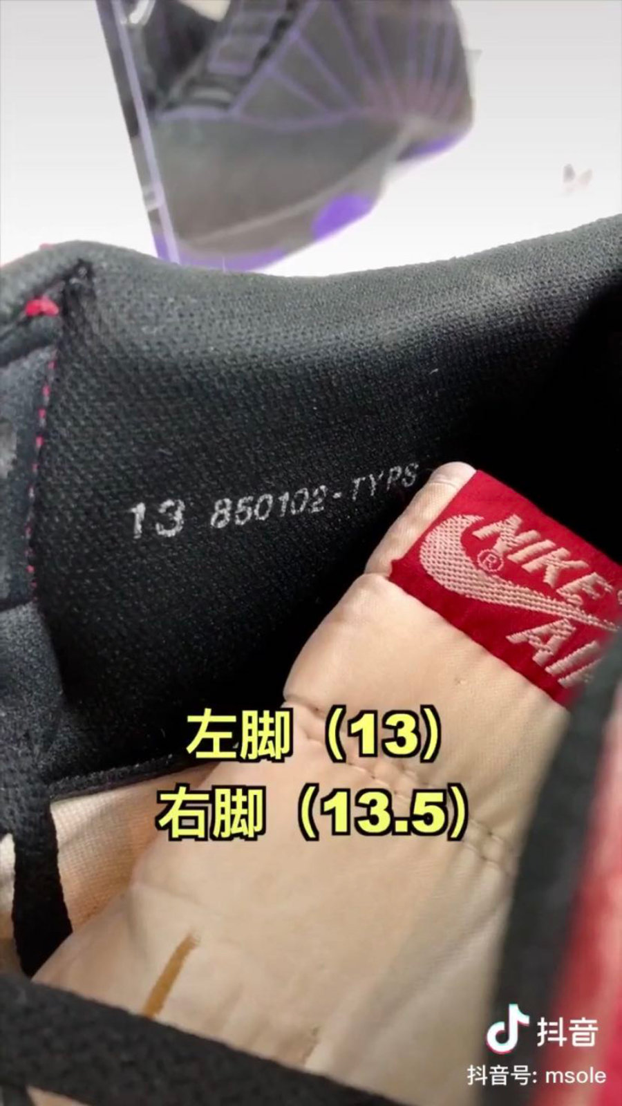 这双是特别为 Michael Jordan 改良的中帮 Air Jordan 1 Mid,左脚为 13 码,右脚为 13.5 码。